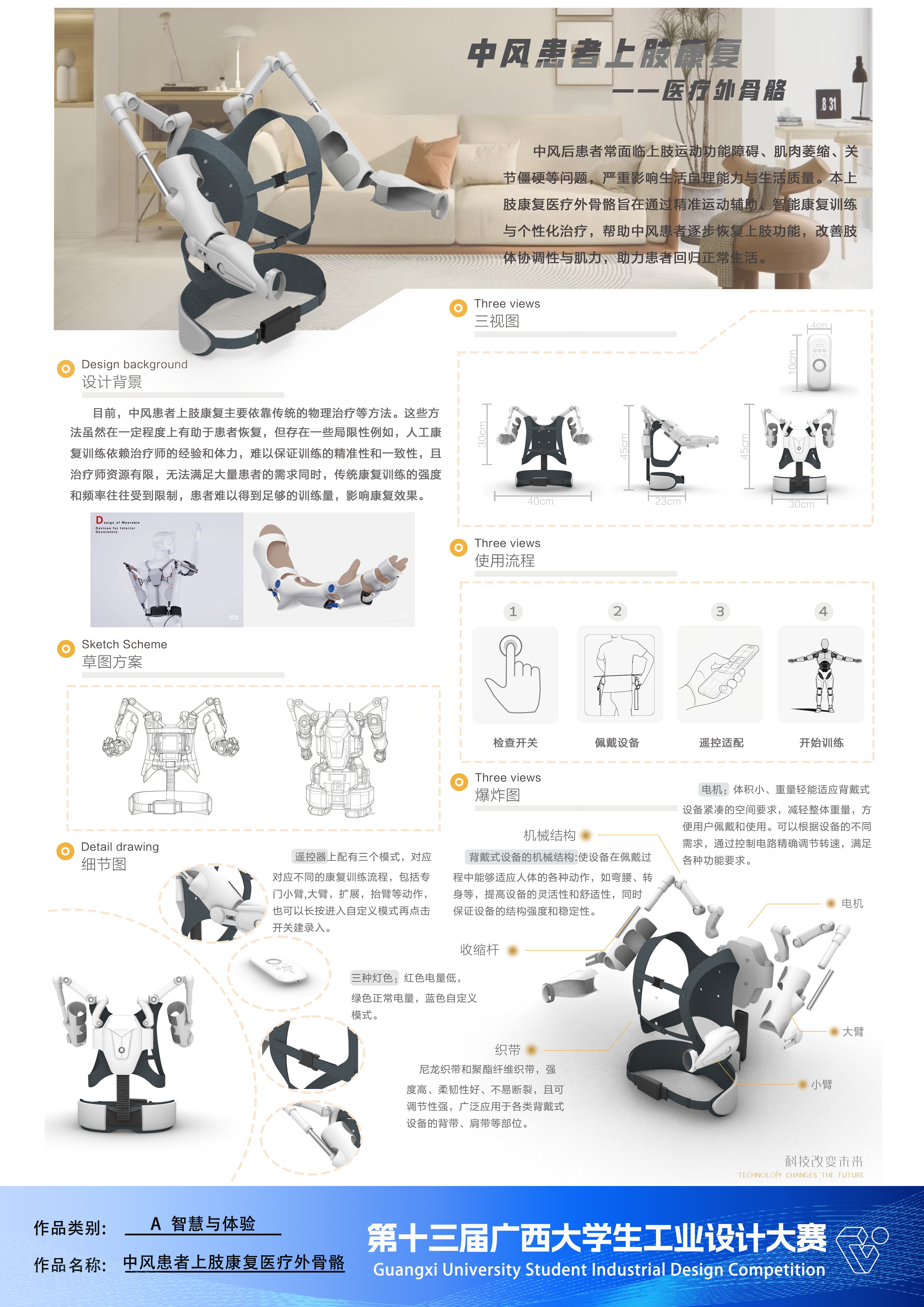 作品名称:中风患者上肢康复医疗外骨骼    作者:梁石孔