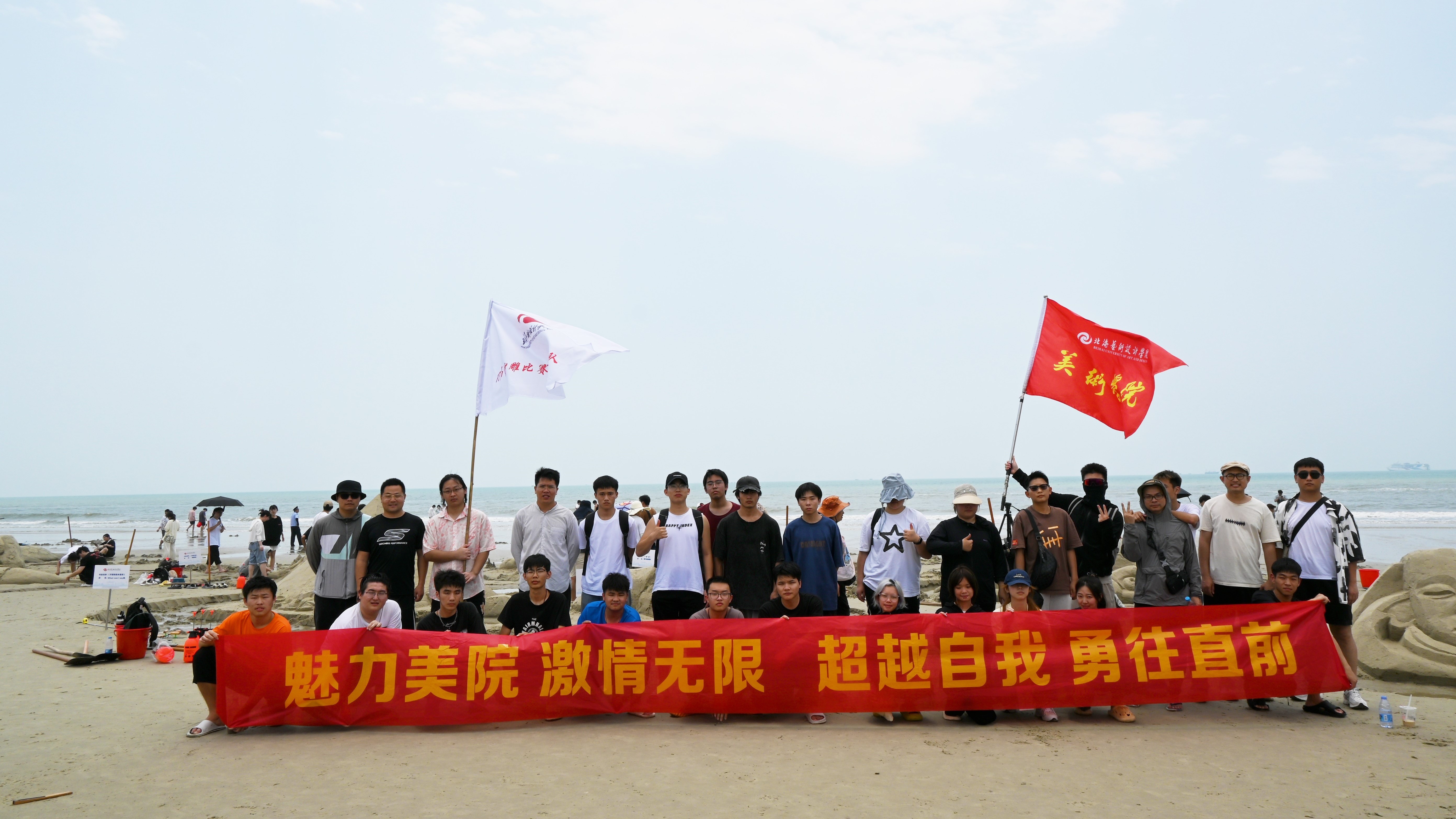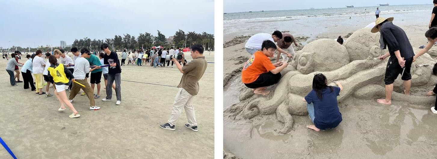 活动过程中,美院师生通力合作,在银滩风景区共同完成了一件又一件的精美沙雕作品,用不同的角度展现海洋文化,也在运动项目中共同鼓劲加油、挥洒汗水,进一步增强班级凝聚力。最终在沙滩雕塑中斩获一等奖一名、二等奖一名和优秀奖若干,也在沙滩排球项目中获得团体第二的好成绩。(李伟民陈颖诗 摄