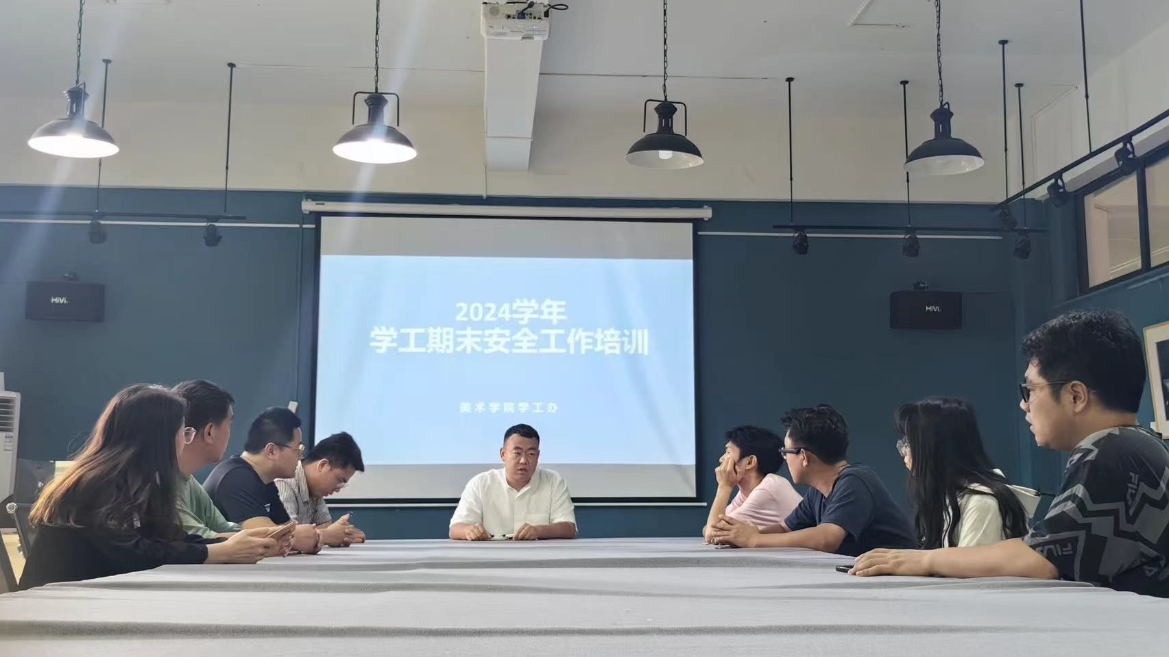 2024 523日,美术学院学工办于艺术楼313对近期工作开展期末安全工作培训,美术学院第五党总支副书记鲁明阳及学工办全体成员参加会议。