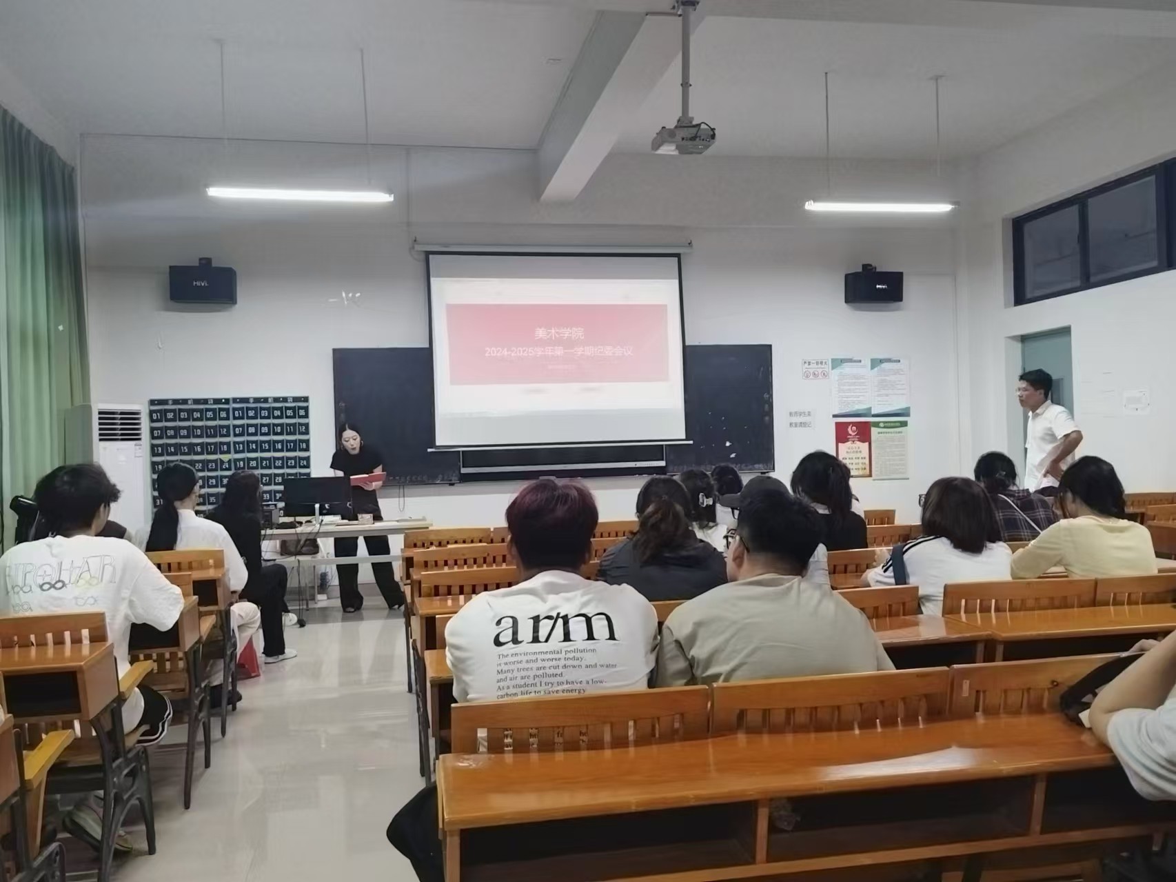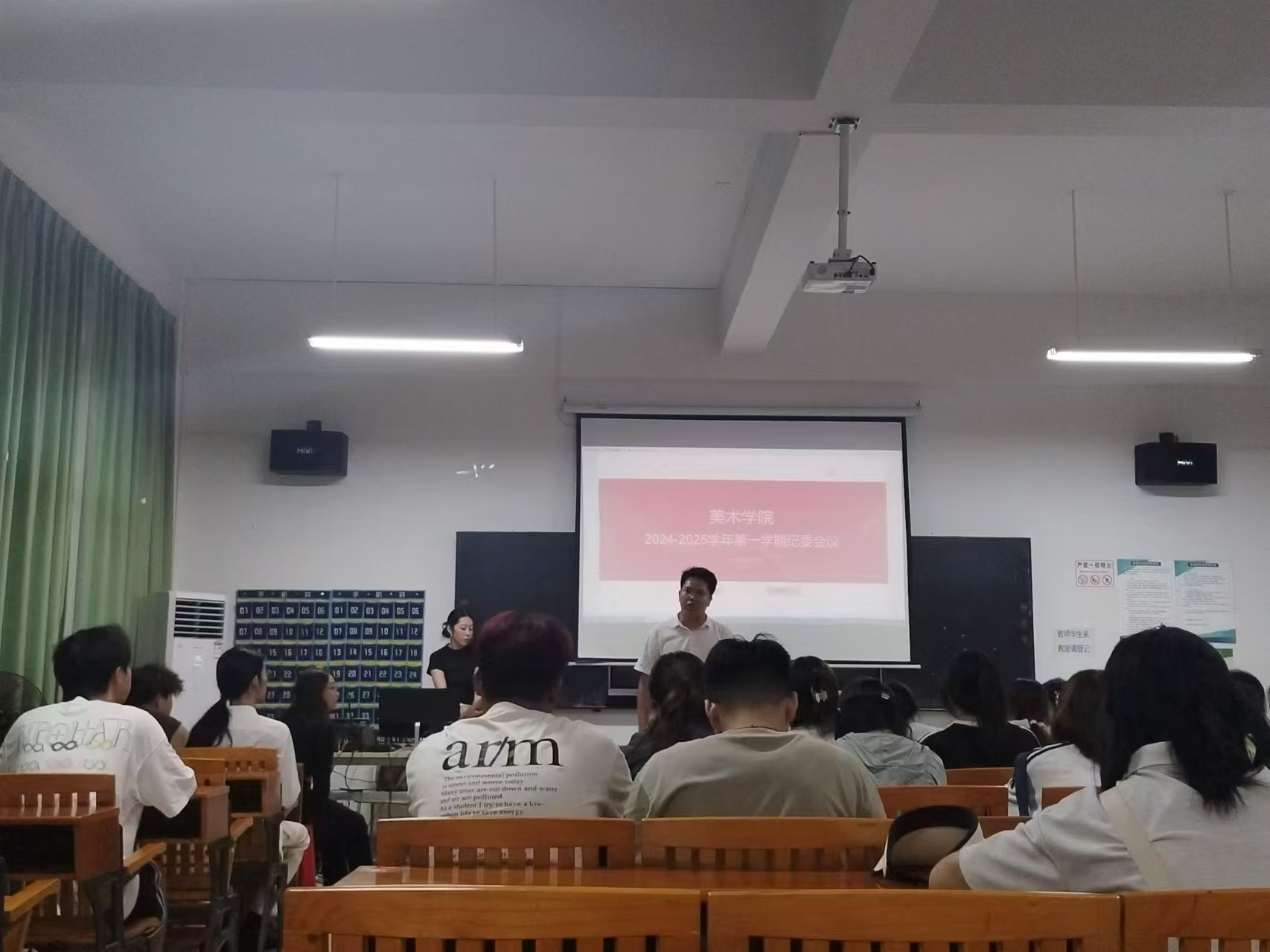 9月18日晚,美术学院学工办于艺术楼314召开2024-2025学年第一学期纪委工作暨2024级纪委培训会,会上肯定了2022-2023级纪委过去一年的工作,同时欢迎作为新生力量的2024级新生纪委加入,并对新学年的学生工作做出切实的安排。会议由美术学院学工办庄嘉伊老师主持,学院副院长殷声、学工办主任林昌华,出席会议并作工作指导。