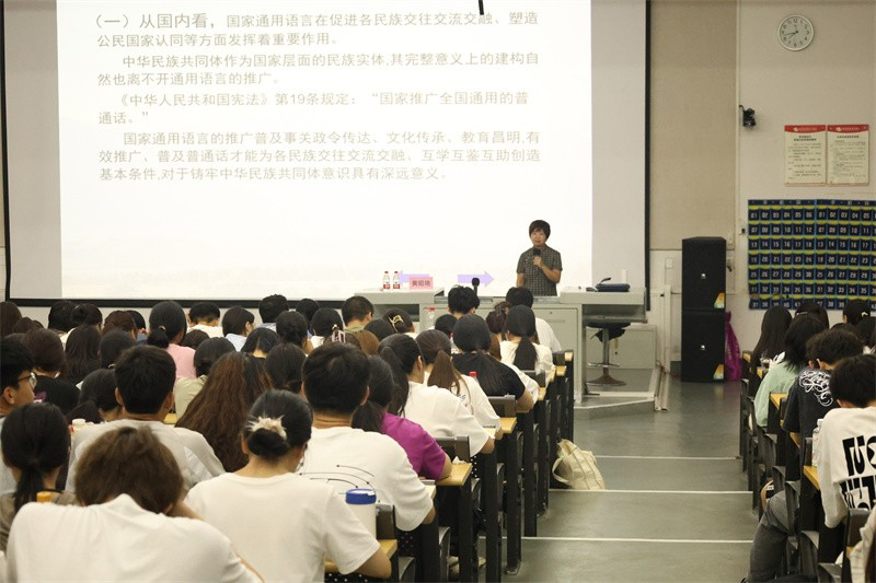 为了加大推广普通话的宣传力度,筑牢强国语言基石,9月26日晚,广西语言学会理事、国家级普通话水平测试员、国家文化部朗诵考级高级教师黄昭艳在西校区公德楼107为我校师生带来了一场题为《提升汉语言规范素养 做优秀文化传承人》的精彩讲座