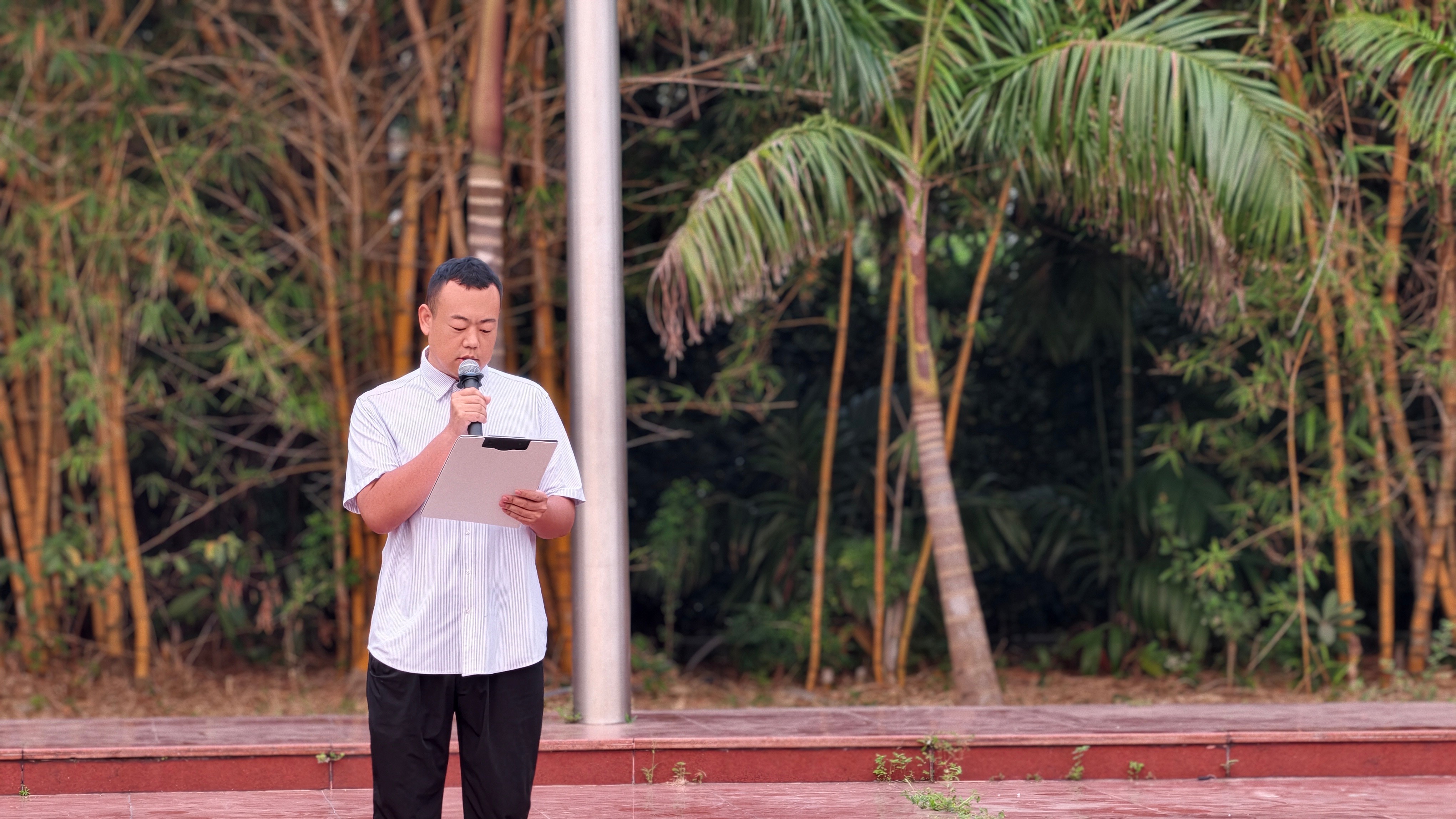升旗仪式上,美术学院书记鲁明阳围绕广西“三月三”节日文化、民族团结、假期安排及文明安全倡议等内容发表国旗下讲话。
