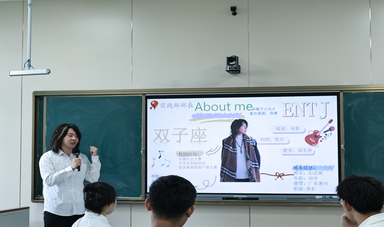 部门展示环节,组织部、宣传部、学术部、办公室、实践部依次亮相。负责人用精炼的“职能白皮书”搭配鲜活的“个人名片”,把硬核规划讲成生动故事:组织部亮出“实干+创新”双引擎,宣传部让艺术审美撞见专业精神,实践部以责任唤醒成长。掌声与笑声同频,新老距离一秒破冰。