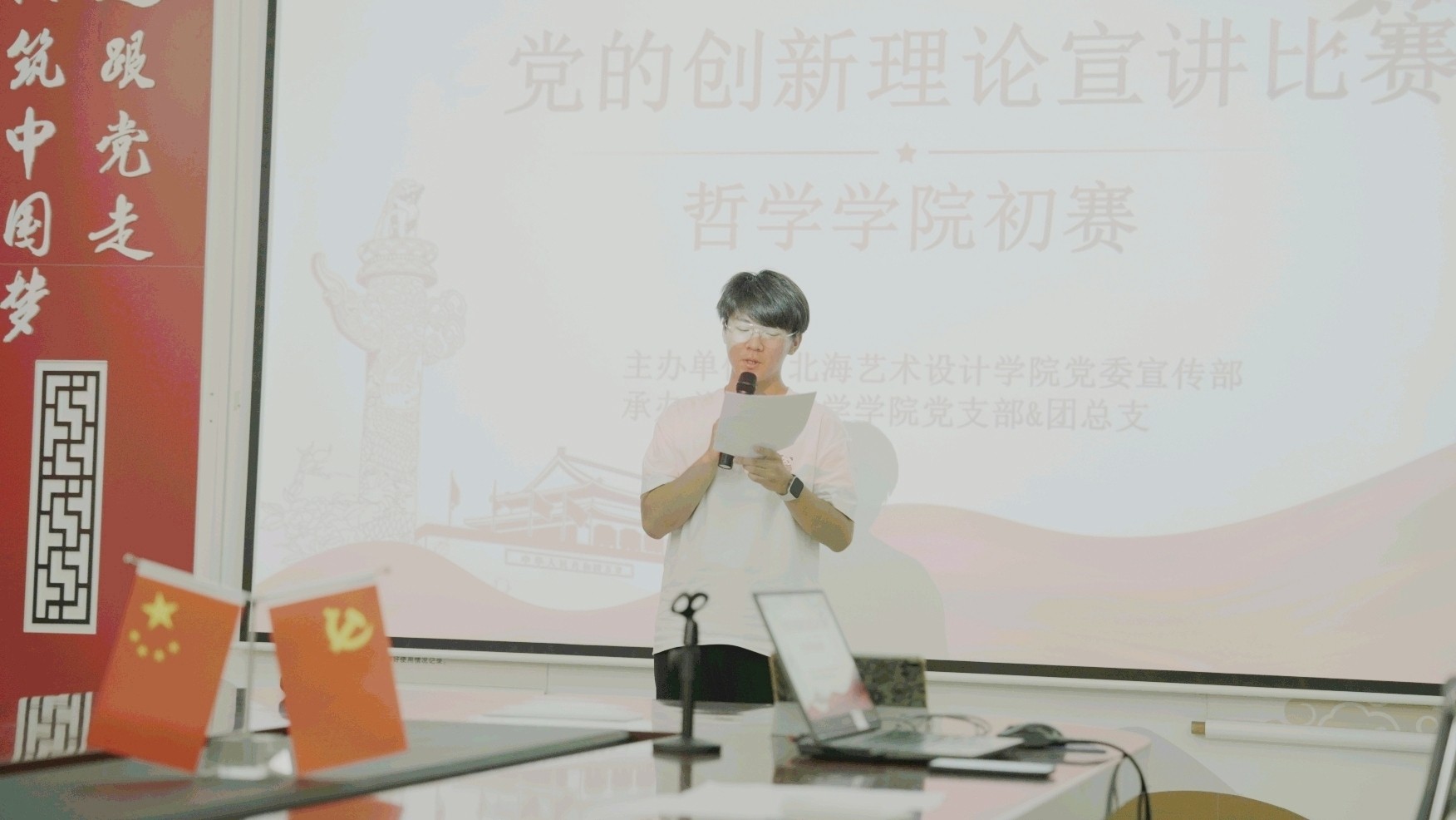 深入学习贯彻习近平新时代中国特色社会主义思想,不断增进我校青年学子对党的创新理论的理解和认同学校党委宣传部联合各二级学院,组织开展党的创新理论宣讲大赛。哲学学院党支部及团总支积极响应,于10月16日中午在西校区公德楼204会议室举办院级初赛。哲学学院党支部书记谢伟、副院长覃传茵及学院综合办谢佩玲老师出席活动并担任评委。
