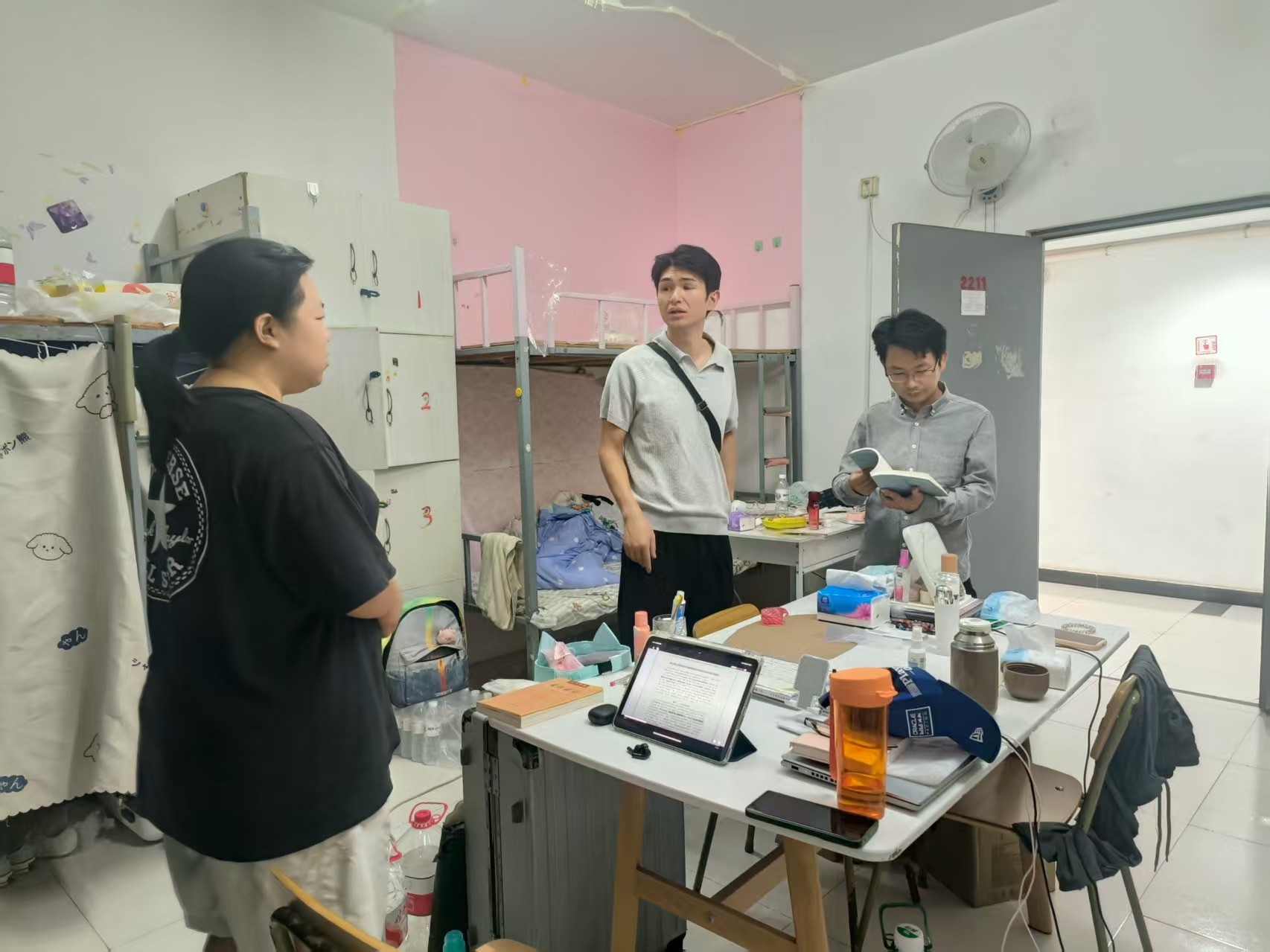 2025年820下午在北海艺术设计学院北京实践基地宏福的学生宿舍里,书法学院常务副院长苏乃从、党支部书记喻广林深入学生宿舍,与同学们亲切交谈,细致询问大家的学业进展、生活需求及未来规划了解他们的学习、生活、思想状况以及实际困难,认真听取同学们对学院工作的意见和建议。