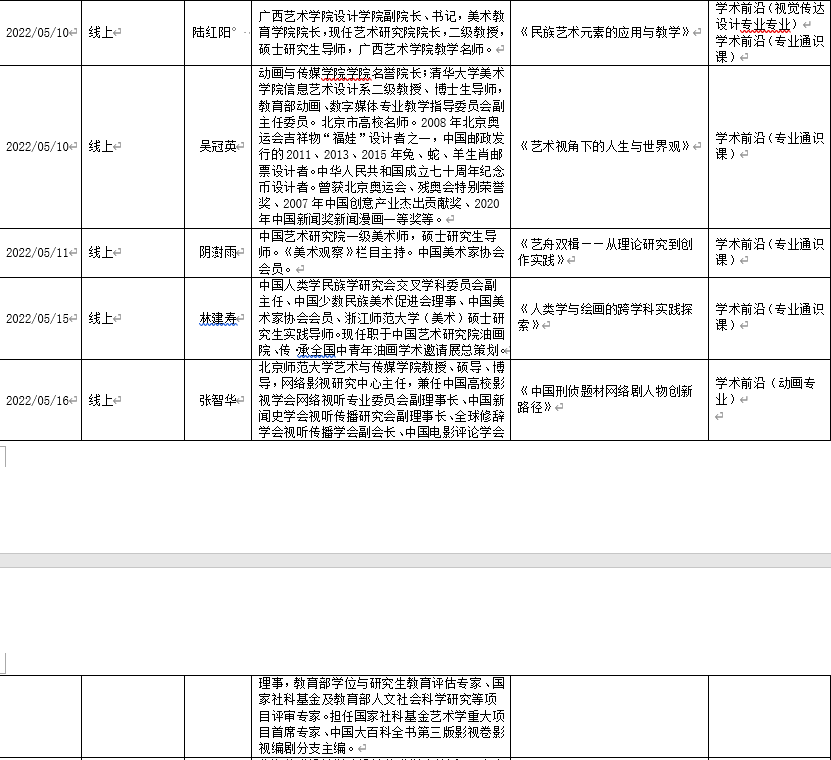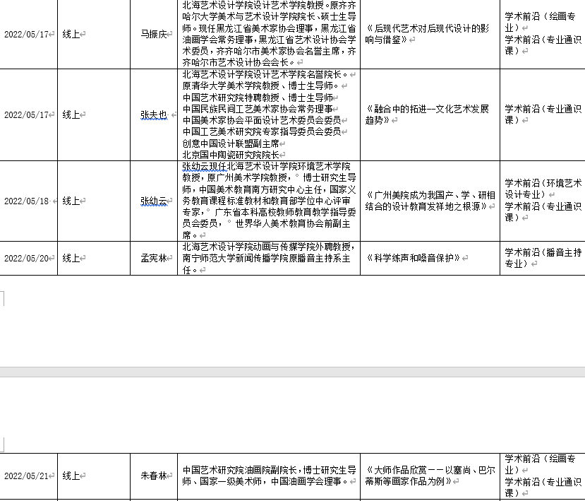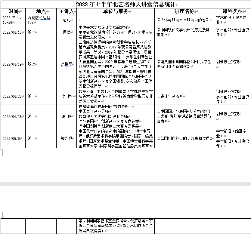 2022年上半年北艺名师大讲堂信息统计