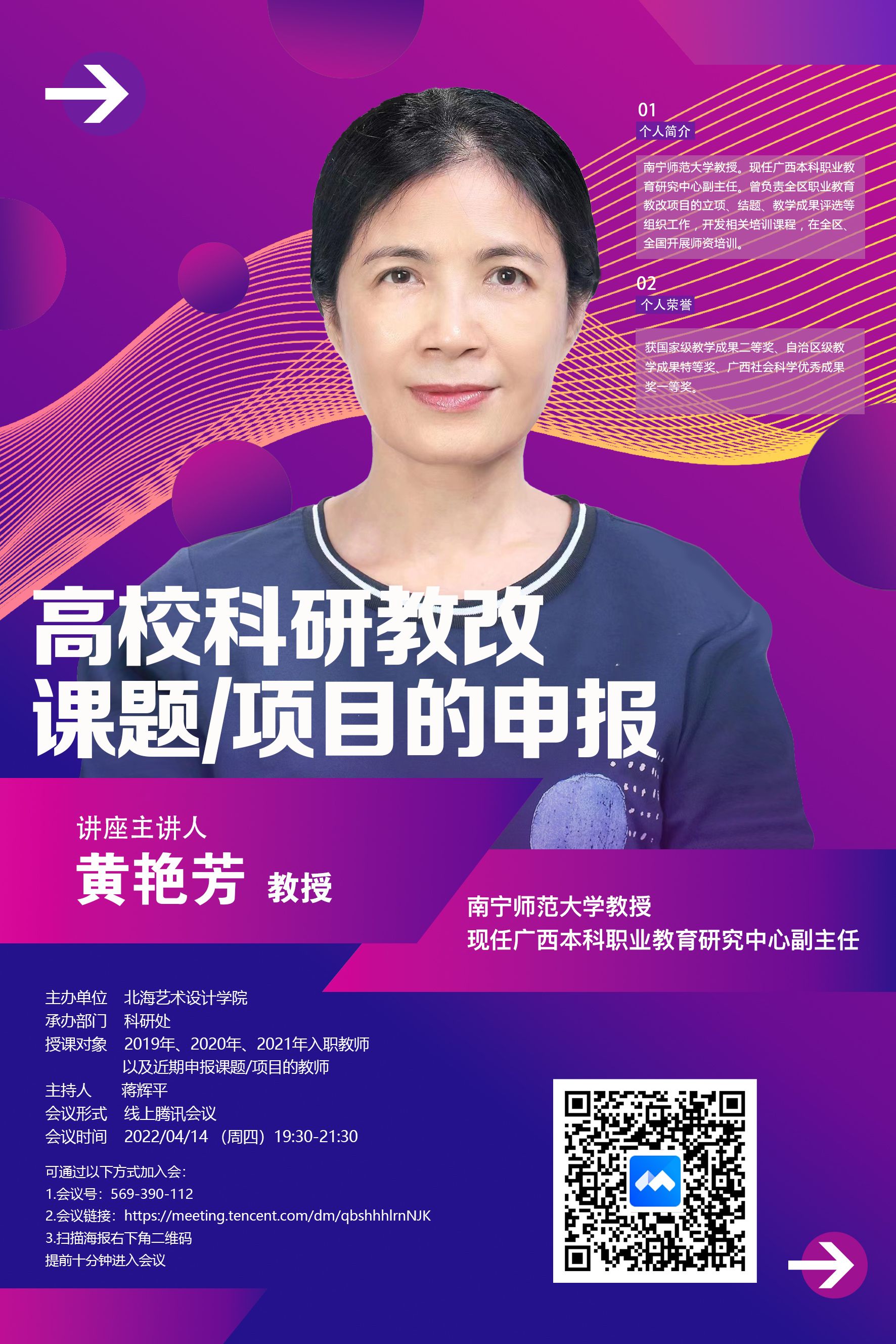 讲座预告 黄艳芳教授《高校科研教改课题/项目的申报》讲座