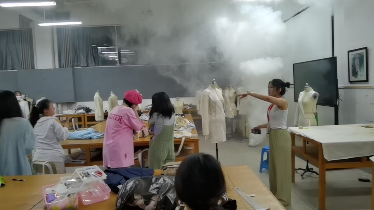 上午9点30分,学生紧急逃生演练正式开始。实训室烟雾弥漫,任课教师指导学生紧急疏散并报警,学生们捂住口鼻,快速疏散至学校操场。保安人员第一时间到达现场,寻找到火源迅速灭火。演习取得了预期的效果。