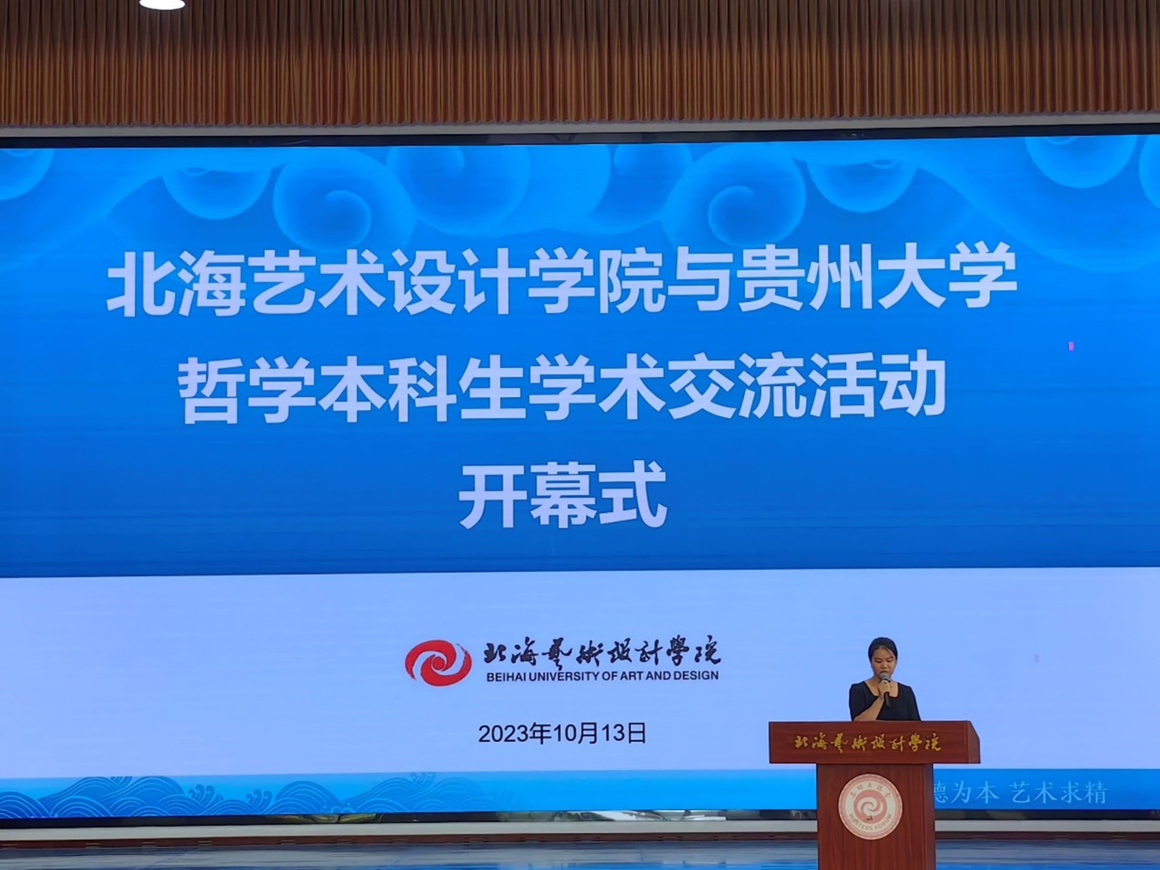 2023年10月13日,北海艺术设计学院与贵州大学哲学专业交流活动开幕式在北海艺术设计学院大礼堂举行。本次开幕式由北海艺术设计学院主办,贵州大学领导和师生受邀出席。
