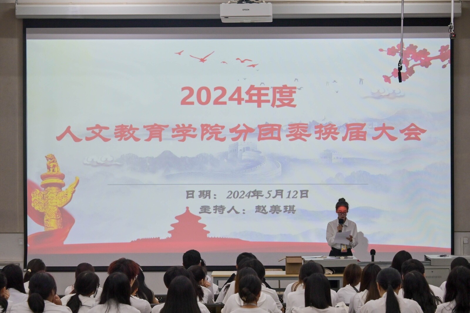 2024年5月12日,人文教育学院分团委于西校区功德楼107教室进行换届竞选及年度总结大会。人文教育学院分团委书记史晓菲、指导老师翟东琴出席本次大会。
