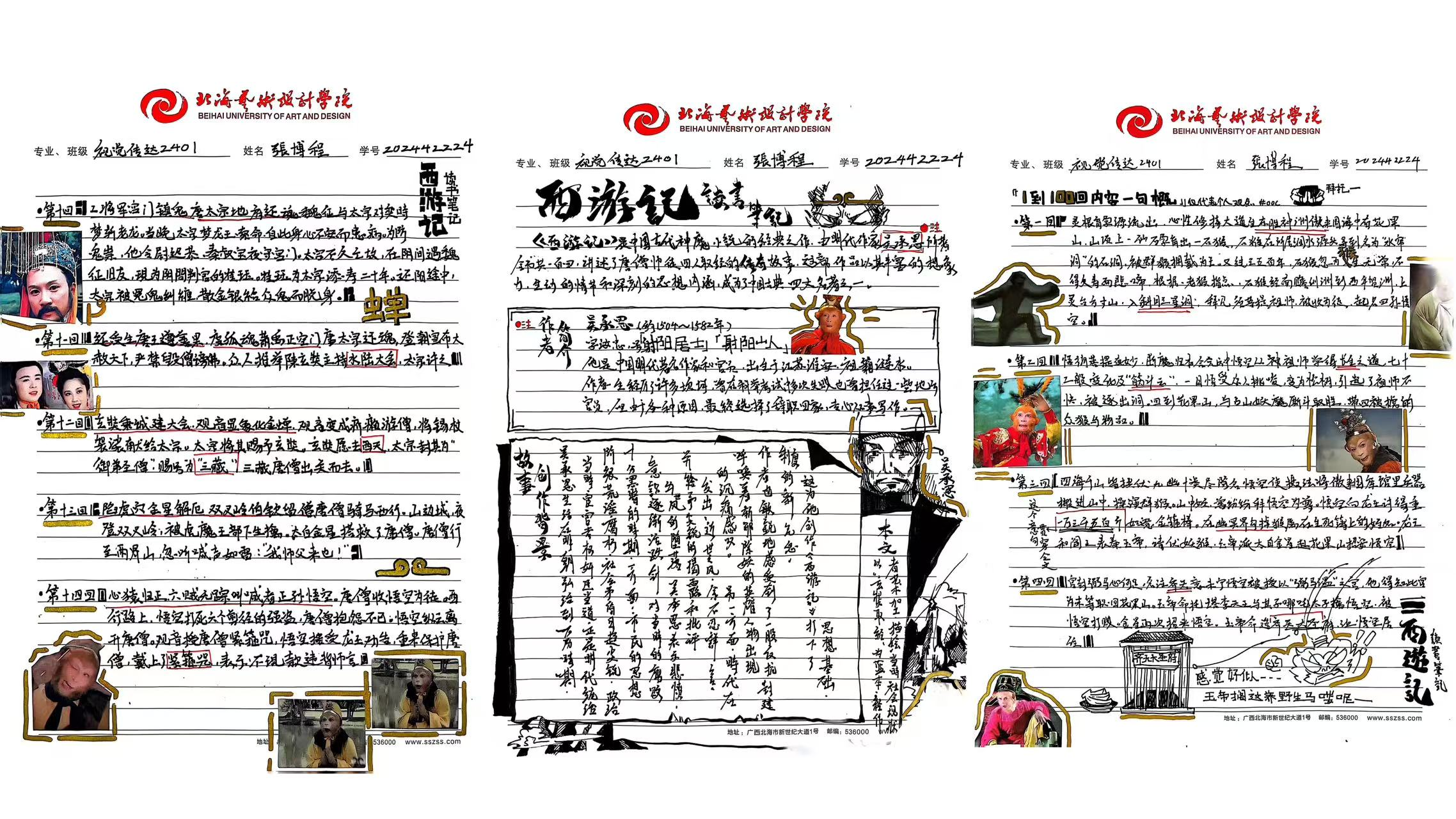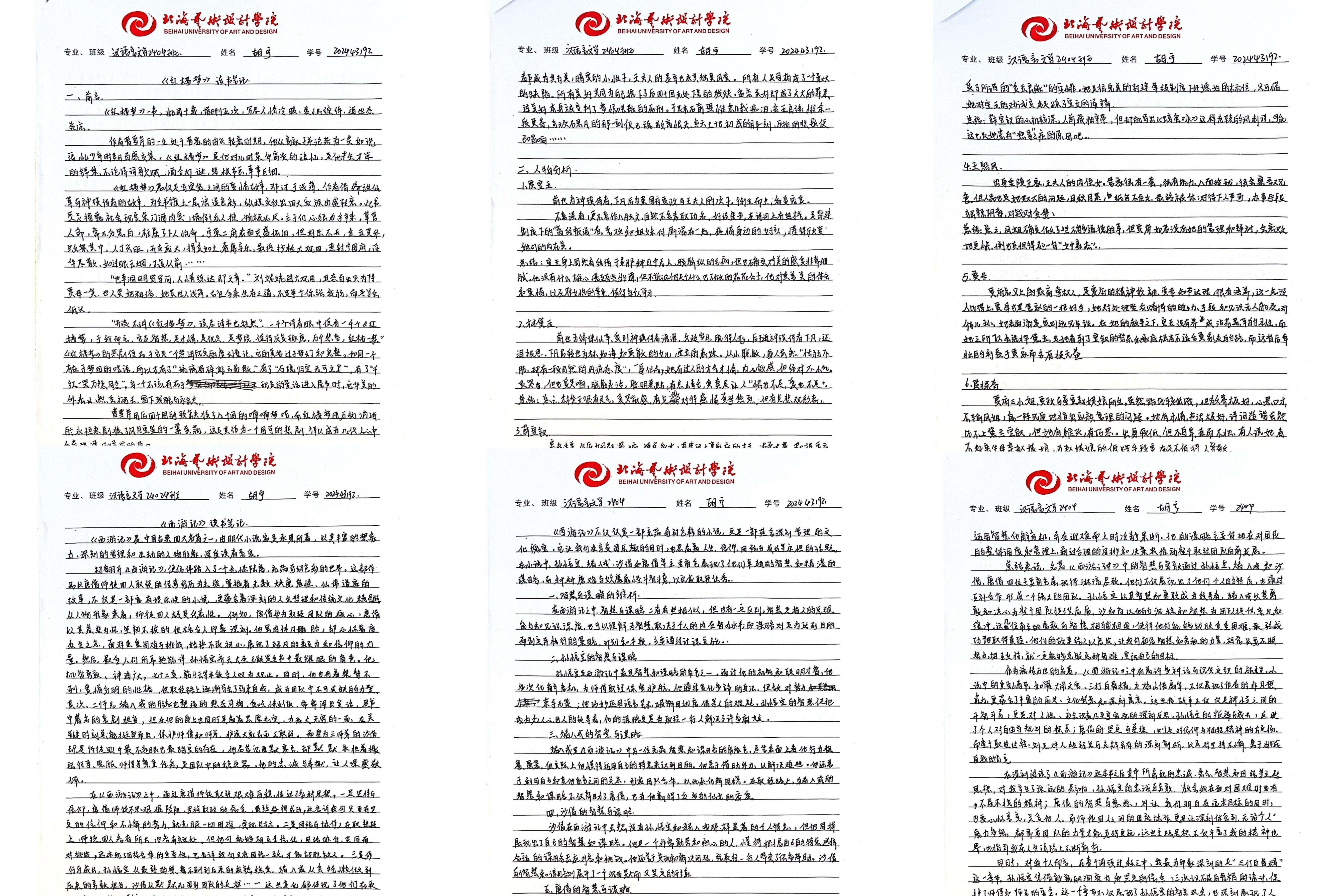 本次大赛已构建起“全员参与、全程用心、全面展示”的特色育人模式,不仅融入文学院课程体系之中,更是传承中华优秀传统文化的重要载体。大赛将艺术思维与创新意识融入经典解读,实现跨学科融合创新。文学院以四大名著读书笔记大赛为抓手,引导学生深入研读经典,传承中华优秀传统文化,形成独立思考的学术品格,培养具有深厚人文底蕴的人才。以下是部分优秀作品展示: