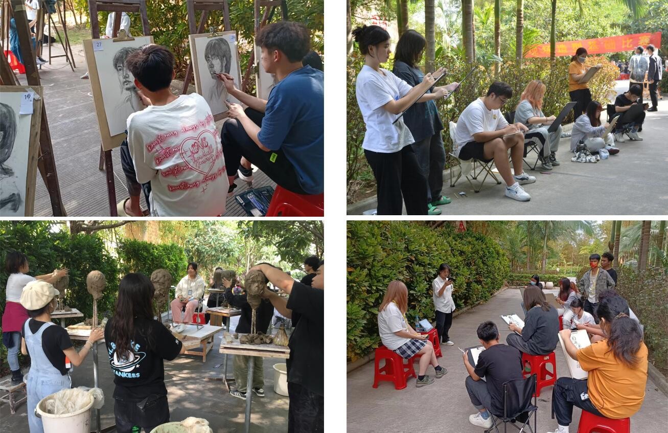 比赛当日天清气爽,学生走出课堂,感受自然之美,以绿茵为背景,留下独特的写生记忆。通过此次活动的举办,同学们在造型能力上的学习与交流进一步深入加强同时为学生构建一个展现自己专业能力台。