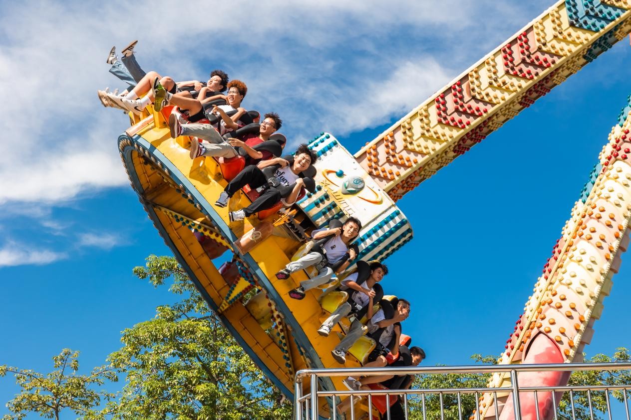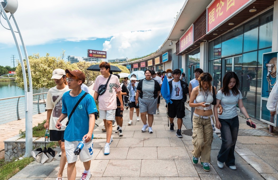 同学们在各类项目设施中游玩体验,在惊叹与呼喊声中体会欢乐与成长,游乐其中逐渐熟悉了解彼此,更好地让大家融入新的集体,大家欢笑声一片其乐融融,充分展现北艺新生积极向上的精神风貌。火热骄阳下的园博园校区同样为同学们提供了空调休息室,为游园活动之余留出休憩的空间。