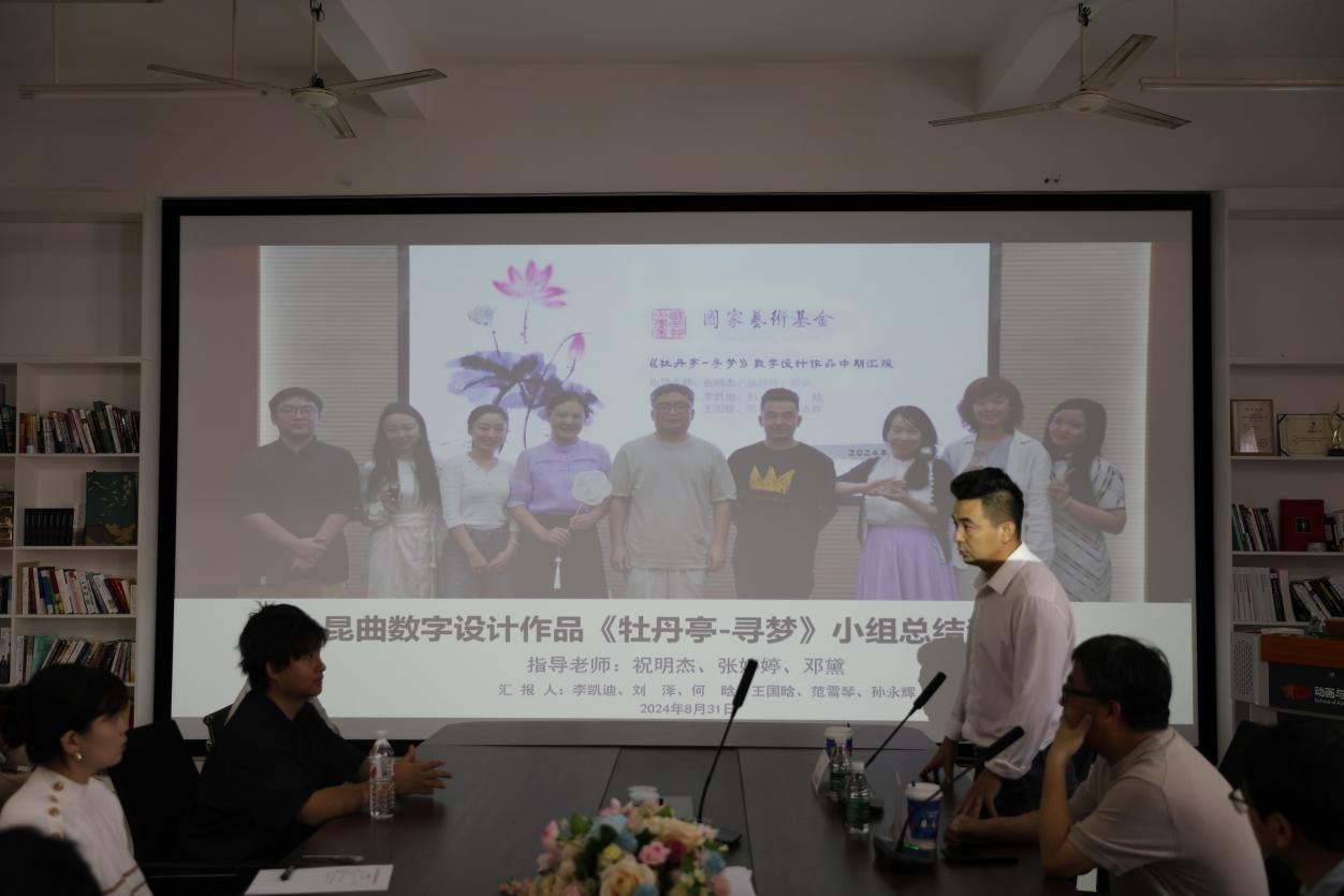 在数字化浪潮席卷全球的当下,传统文化与现代科技的融合已成为艺术领域的一大热点话题。2024年10月28日,北海艺术设计学院综合楼演播厅内一场关于艺术基金创作的分享座谈会热烈展开,上海大学祝明杰教授与动画与传媒学院院长孙永辉共同探讨了艺术与科技融合的新路径。动画教研室主任吴锡红主持会议。