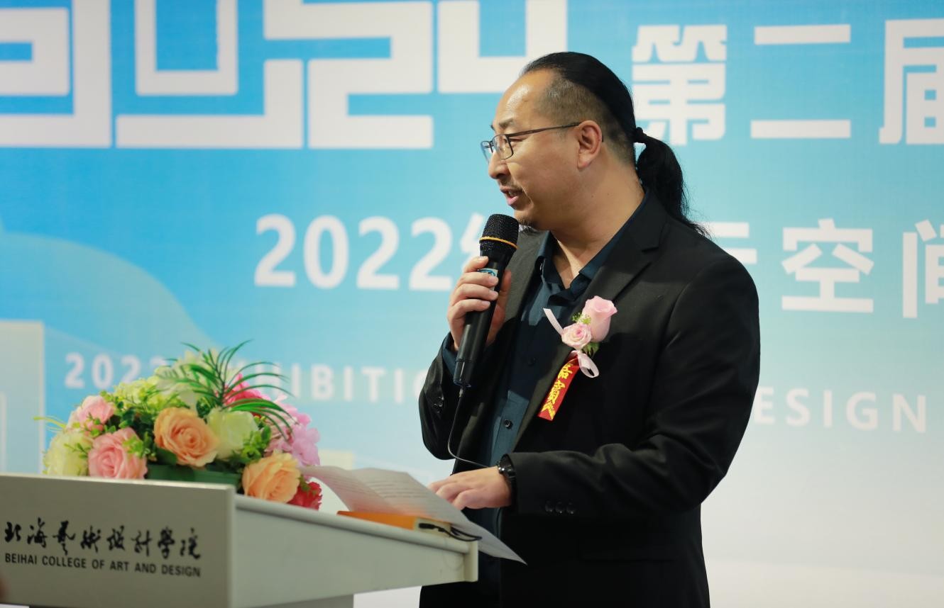 党委书记覃宪儒宣布金橄榄杯第二届“美丽中国——文化之美”,2022级环设专业展示空间设计模型制作成果展正式开幕。