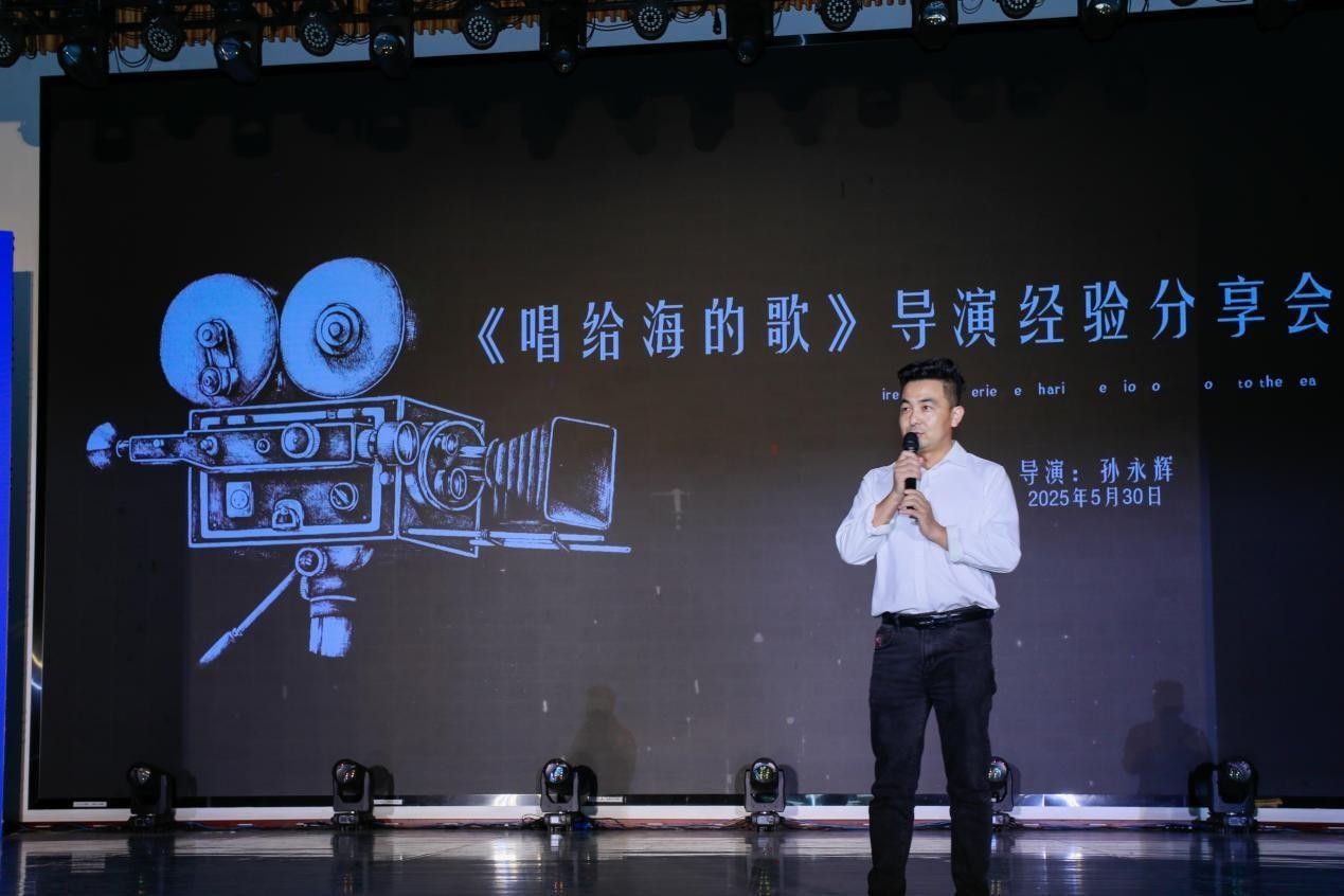 导演创作分享环节,动画与传媒学院院长孙永辉分享了执导我校首部教育题材网络电影《唱给海的歌》的艰辛历程。他坦言创作之路“布满荆棘”,面临协调涠洲岛实地拍摄、指导非专业小演员、平衡海洋生态保护与乡村教育振兴双线叙事、克服资金设备限制等多重挑战。孙永辉强调,团队凭借坚韧协作与灵活应变克服困难,导演需在压力下果断决策。他期望学生理解优秀作品诞生于坚持,并寄语在场师生:“用心演绎每一部电影,让光影不仅记录故事,更能点燃梦想,传递温暖与力量。”​