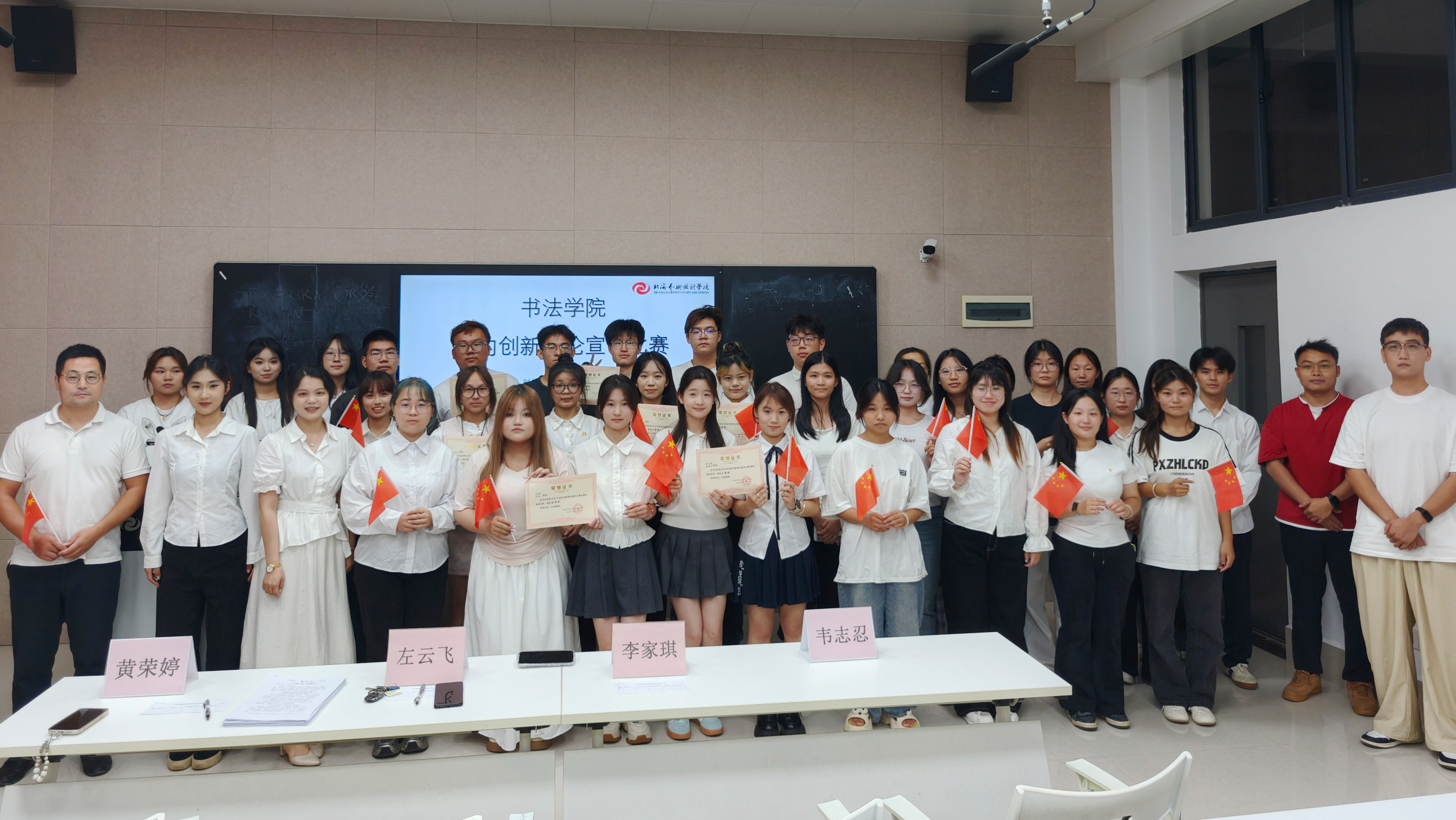 本次比赛探索了一条“以笔墨承载思想、以书写坚定信仰”的育人新路径,理论不再是书本上的抽象概念,而是化为笔端的风骨与宣讲中的真情,在知行合一中深刻塑造着学子们的文化人格与精神世界。学院将持续促进理论学习与专业教育、校园文化的良性互动,引导学生在更广阔的舞台上展现书法学子的思想活力与专业素养。(林语葭郁斯萱/摄)
