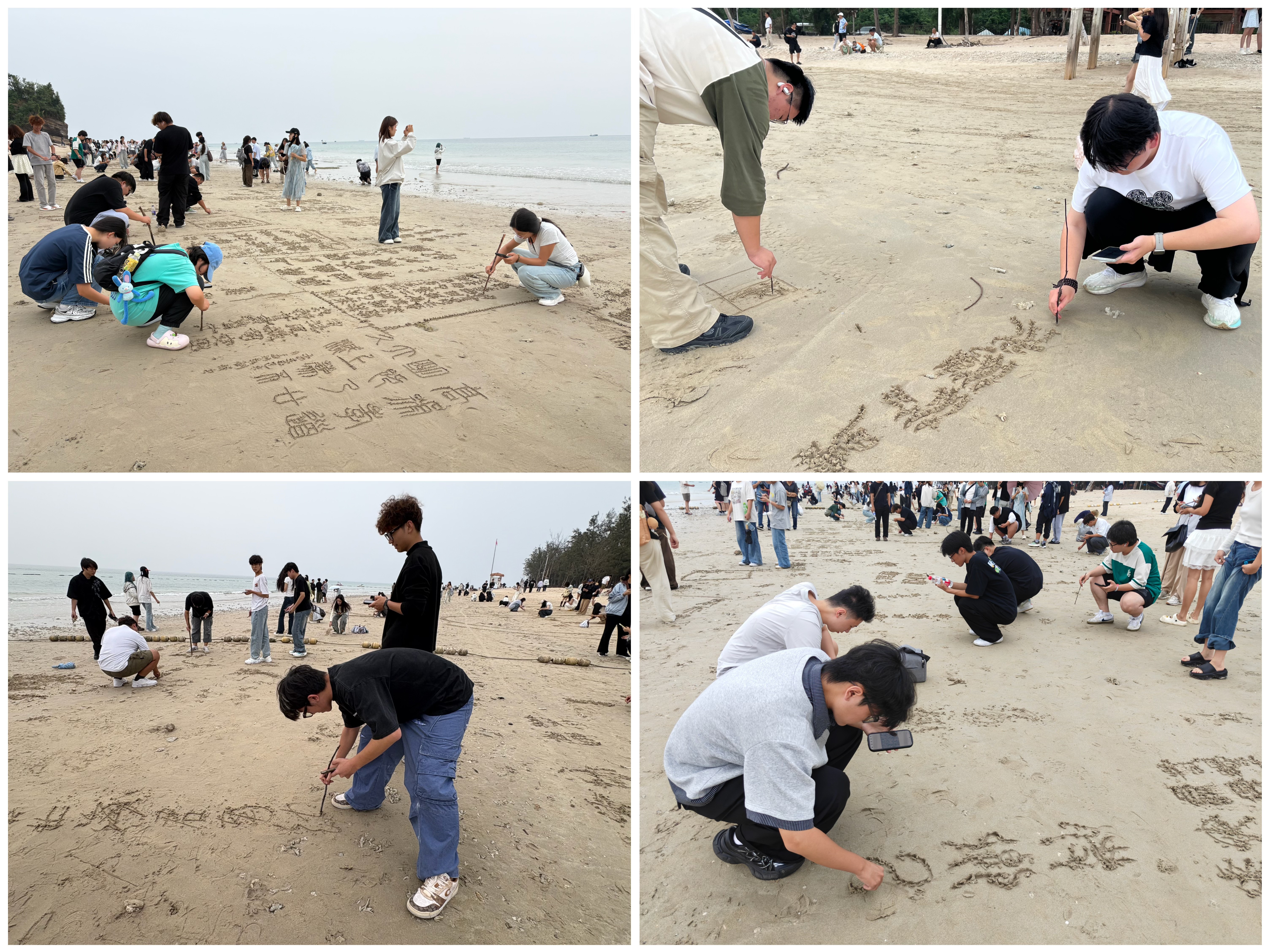 11月17日,书法学院首届“沙韵书香・笔耕蓝海”沙滩书法大赛在贝壳沙滩启幕。学院常务副院长苏乃从详细介绍了赛事规则与安全须知,强调在自然环境中创作既要展现艺术创造力,也要牢固树立安全意识与环保理念。随后,师生共同转入实践环节依托海滩这一独特的自然场景,展开现场书写在教师引导下,学生们通过“以手代笔、以沙为纸”的方式,亲身体验“锥画沙”笔法的独特韵味,在潮汐边界感受笔锋与沙粒的摩擦,有效提升了艺术感知力与创作适应性。