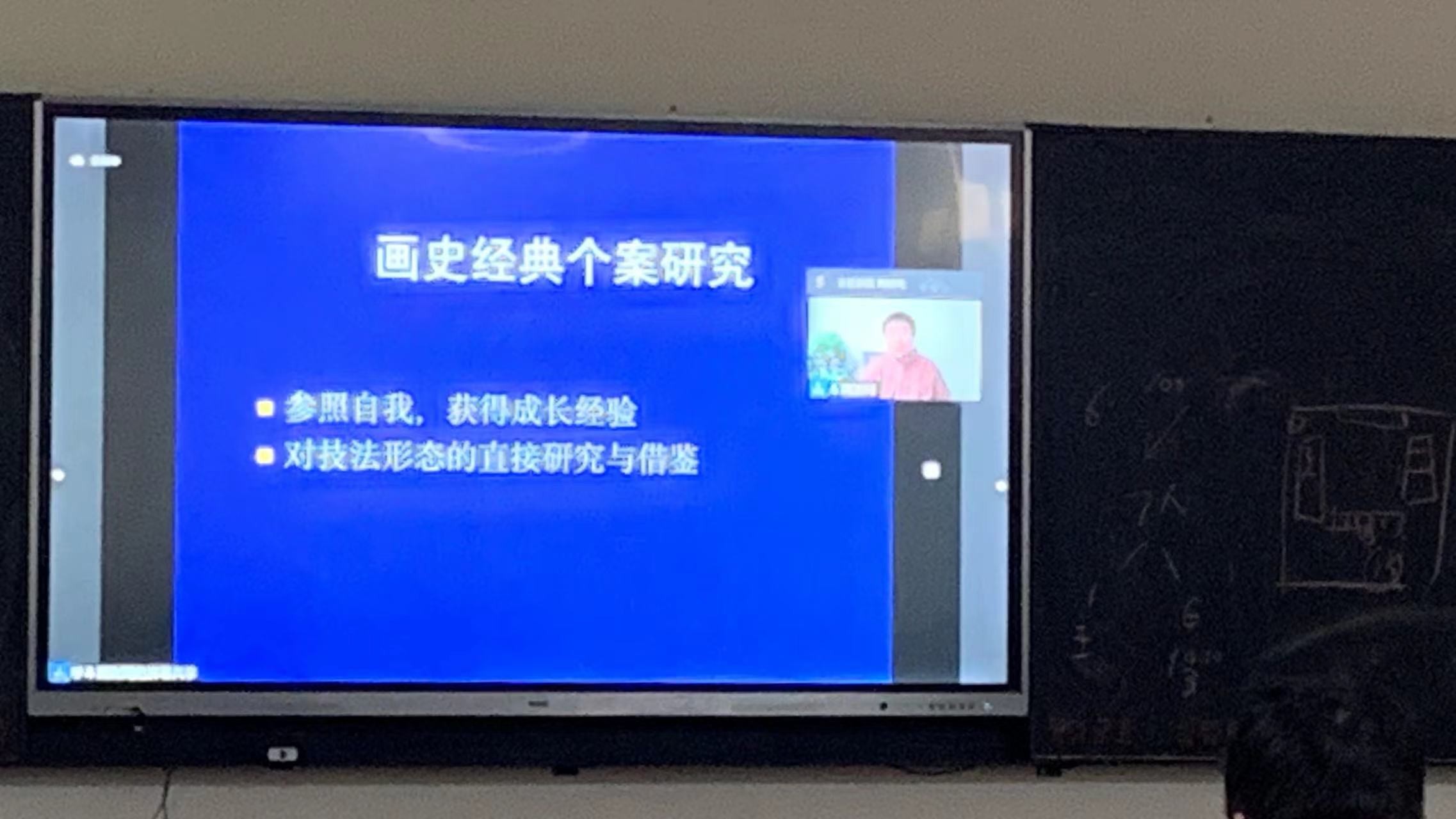 2022年5月11日下午15:10,美术学院邀请阴澍雨老师为全院师生进行了题为《艺舟双楫——从理论研究到创作实践》的专题讲座,2019、2020级国画方向同学以线上、线下的形式参与讲座。