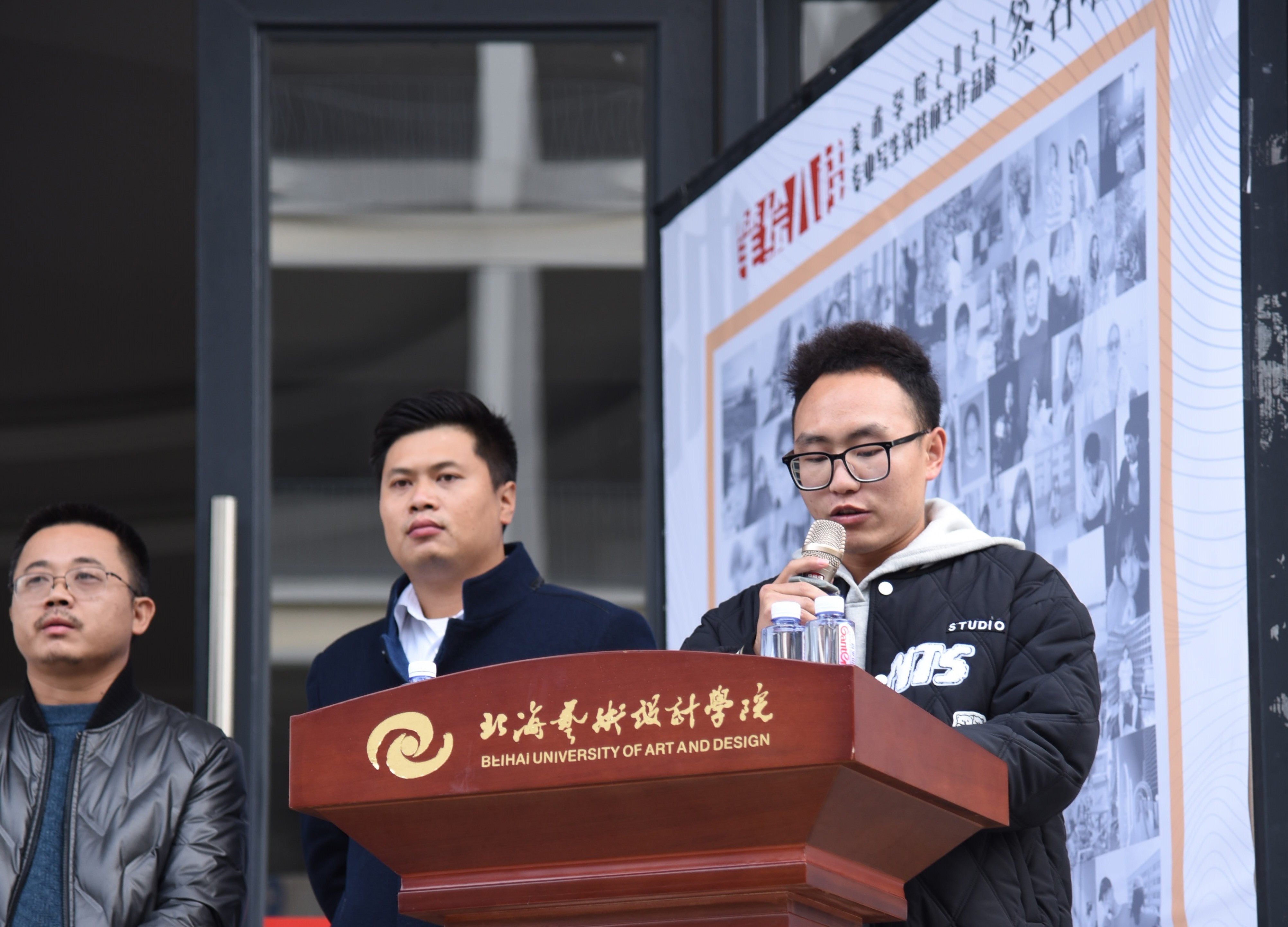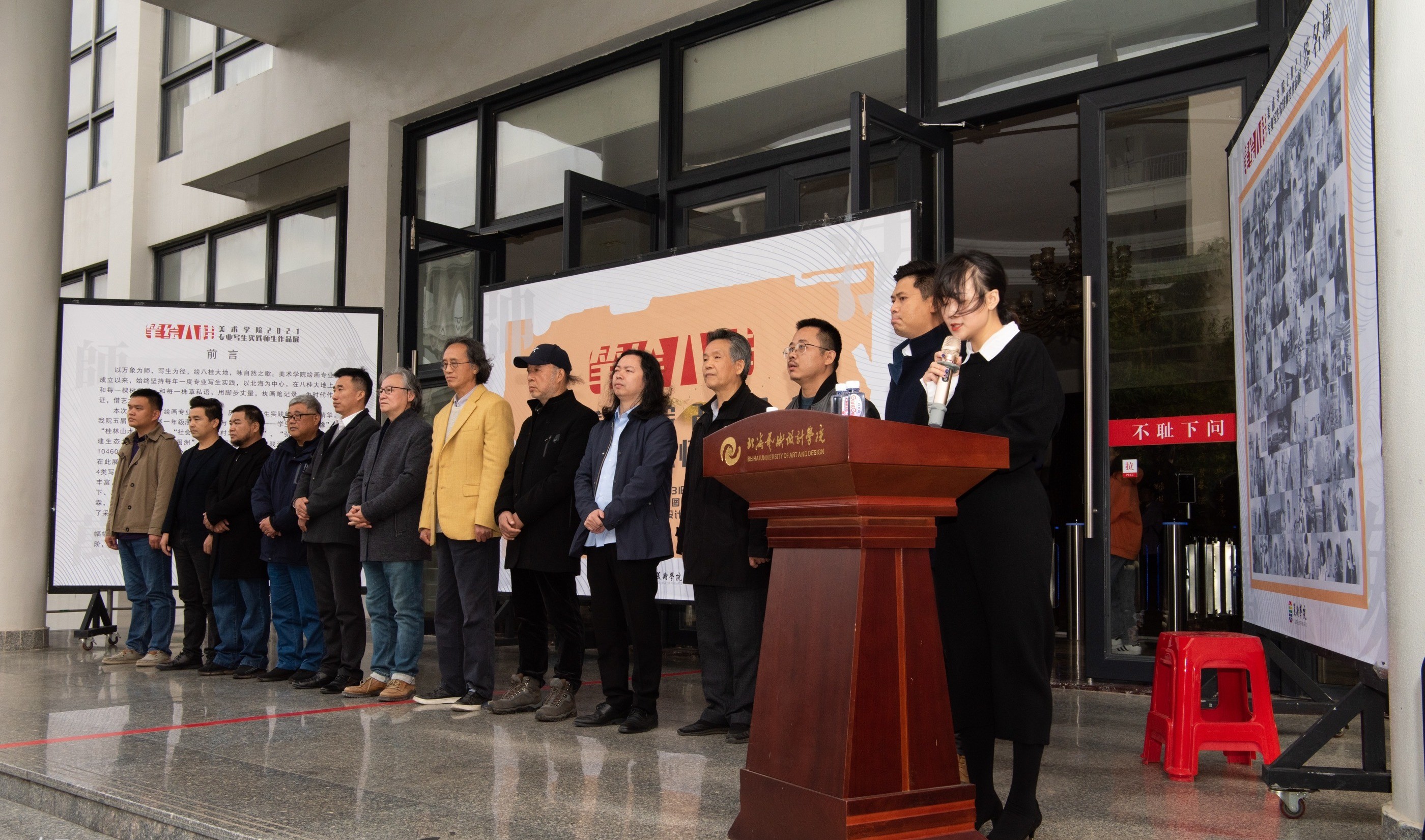 20211231日下午430,美术学院于西校区图书馆一楼展厅举行美术学院“笔绘八桂”——美术学院绘画专业写生实践师生作品展。本次展览出席的嘉宾有北海艺术设计学院校长卢新华,北海艺术设计学院副校长胡胜,北海艺术设计学院副校长陶立阳,北海市美术家协会主席、北海艺术设计学院特聘教授肖畅恒,北海市画院院长、北海艺术设计学院特聘教授蔡群徽,北海艺术设计学院美术学院潘毅群教授、巫维轩教授,北海艺术设计学院动画学院党总支书记孙永辉,北海艺术设计学院美术学院党总支书记韩玮,北海艺术设计学院美术学院副院长龚为,北海艺术设计学院美术学院绘画教研室主任张湘中,北海艺术设计学院美术学院综合办主任、专业写生系列课程负责人肖玺,以及美术学院绘画专业部分师生。美术学院郭珂老师主持本次汇报展,肖玺老师以及优秀学生代表徐进以及卢新华校长先后分别进行了发言。