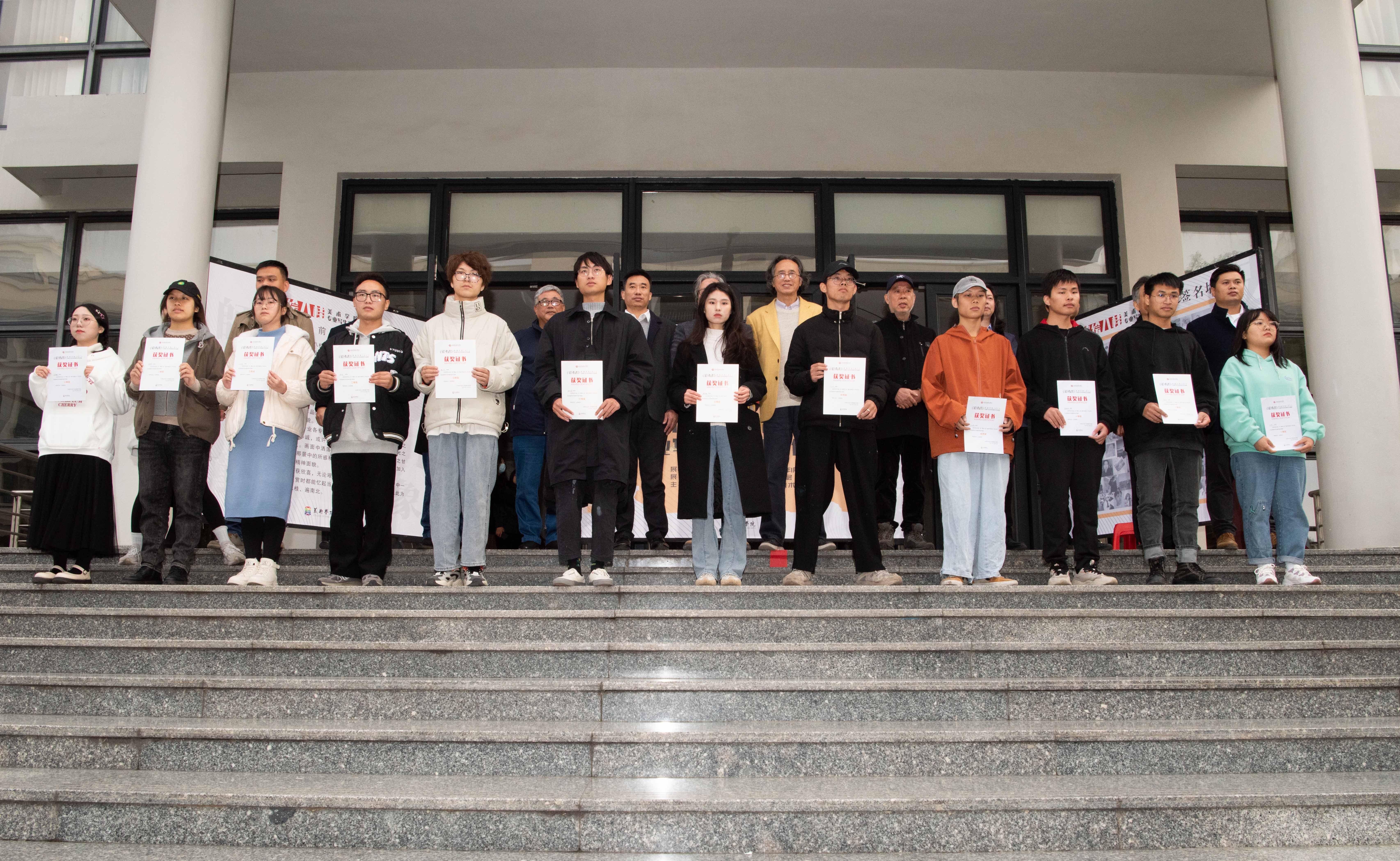 随后,举行本次展览中获奖同学的颁奖仪式。本次获奖学生共47名,其中一等奖3名,二等奖9名,三等奖15名,另有优秀奖20名。由本次参与嘉宾为获奖同学颁奖。