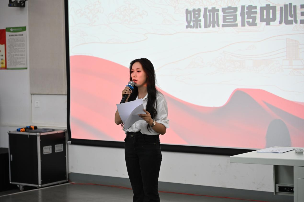 随后,会议进入第二项议程,各部门代表发言。综合办公室主任王文洁围绕抓牢重点、协调部门和做精做细三大核心方向展开发言。组织工作部主席李敏从部门职能介绍与工作计划两方面对部门工作进行总结媒体宣传中心主席李芮星以“三样武器”形象地概括了部门的定位,强调通过镜头、文字与创意,生动讲述文学院分团委的故事。学生会主席周思思对部门本学期的工作计划进行了全面阐述,确保各项工作从“纸上规划”顺利转化为“实际成效”。