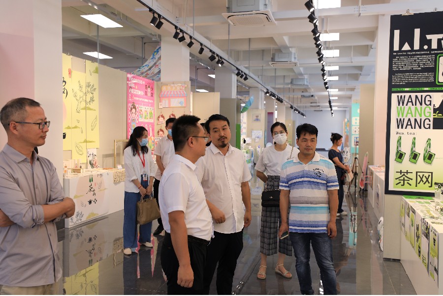 会前,王斌副校长和李林平院长陪同与会企业领导参观设计艺术学院《品牌设计与VI》课程汇报展,李林平院长在展厅对学生的作品选题及设计理念进行了介绍。