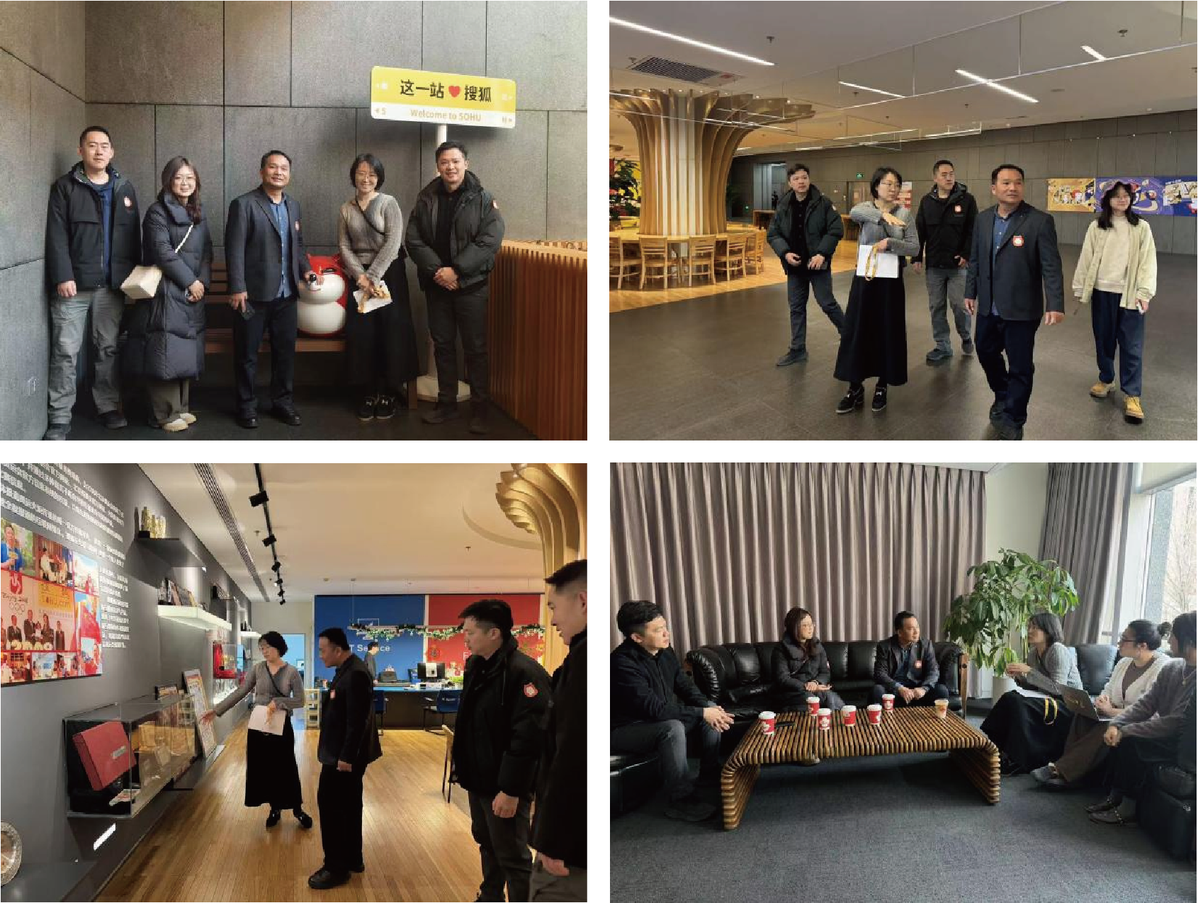 随后,调研组到访搜狐新媒体信息技术有限公司。集团人事负责人罗令、郑思晨等工作人员首先感谢了我院对往届搜狐视觉设计大赛的支持,介绍了企业发展历程、业务布局及文化理念,并结合近年的招聘经验提出了建议:大学生应突破专业局限,拓宽视野,深入了解市场与产品全流程,还需要积极参与实习实践。据介绍,搜狐黑马大赛专为挖掘新人设立,优秀参赛者可获得实习机会,这种“以赛选人”模式实现校企双向赋能,构建良性合作循环。