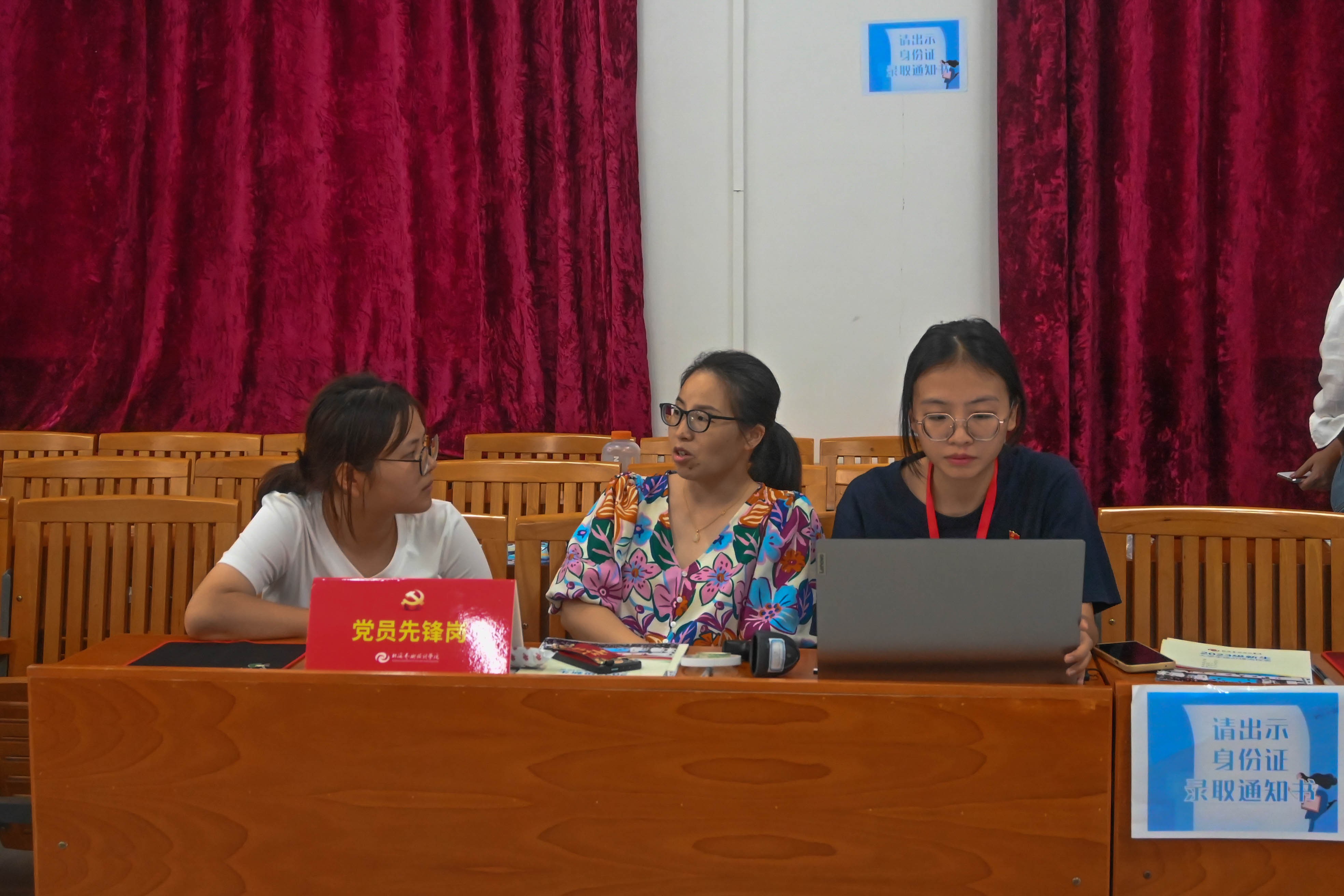 为确保学校迎新工作顺利进行,更好地为新生服务,引导广大师生党员充分发挥先锋模范作用,在志愿服务中体现责任担当,提升党员服务意识,充分展现党员的精神风貌。在今年新生报到期间第四党总支(人文教育学院)设立“党员先锋示范岗”,师生党员聚力迎新一线,配合学院开展迎新工作。