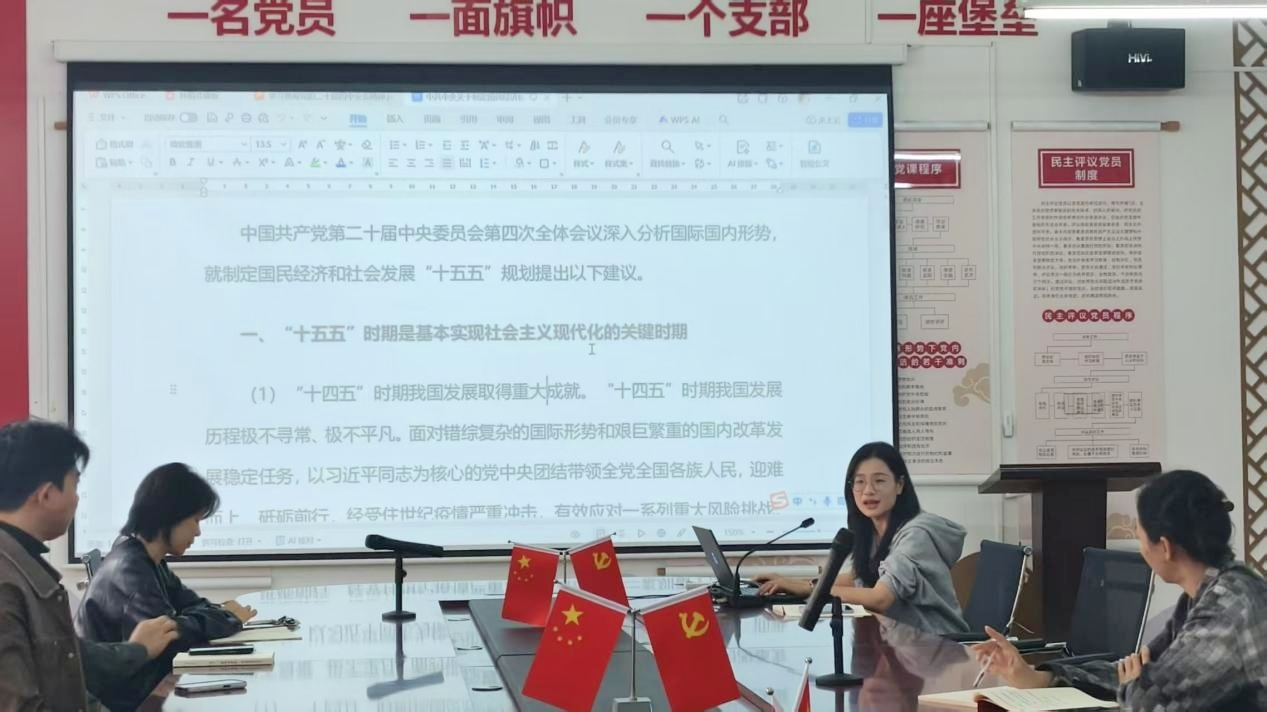 为学习贯彻党的二十届四中全会精神,落实《中共中央关于制定国民经济和社会发展第十五个五年规划的建议》提出的教育改革发展任务,文学院于12月23日在德楼204会议室开展专题学习会议。学院党支部书记岳莹主持学习并讲话,学院全体领导班子、教师参加学习。