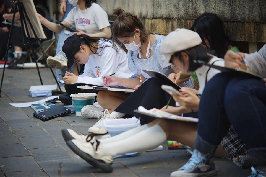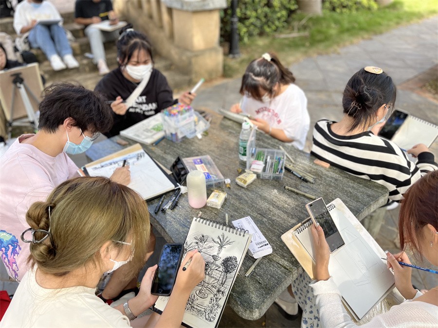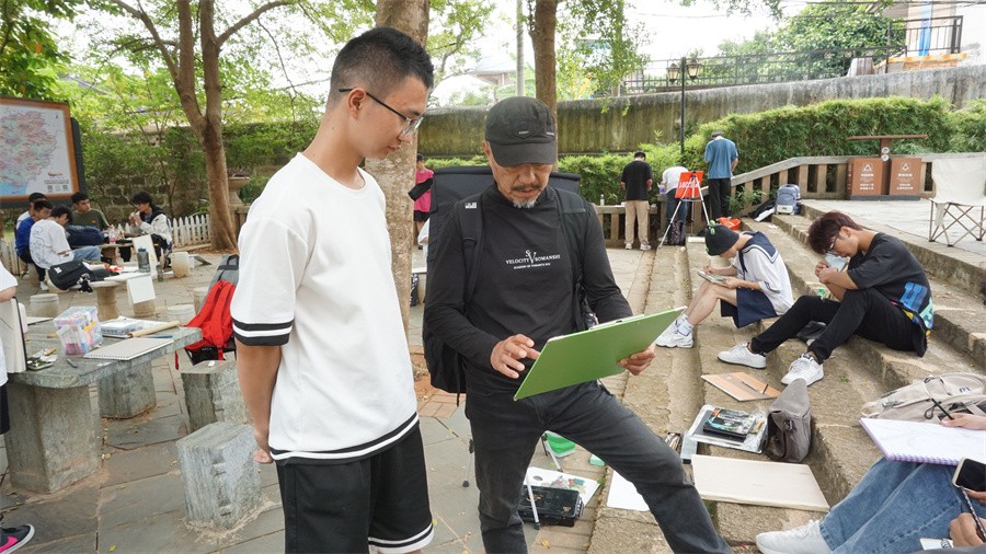 各专业教授和任课教师深入写生教学实践活动,对写生场景进行讲解,为学生作范画示范,并认真给予学生指导意见。