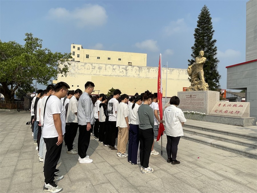 为深入学习贯彻党的二十大精神,推动学校党史学习教育常态化,引导广大师生深刻认识“两个确立”决定性意义,自觉从党的重大成就和历史经验中汲取智慧,更好地奋进新征程,建功新时代。3月11日-12日,学校学生工作处组织60余名受助学生前往北海赤西村、地角女民兵连史馆和红树林生态公园开展“忆百年征程,行红色之旅”资助育人研学教育活动。学工处处长班媚、副处长刘玲花,学工处学生资助管理中心全体老师参加活动。活动由学工处副处长刘玲花主持。