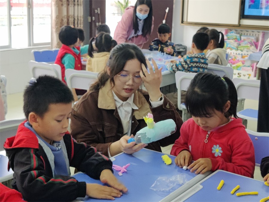 在艺术教育实践教学活动环节,我校学生赴曲樟乡中心小学不同年级开展生动有趣的艺术教育实践活动。他们通过绘画、音乐、舞蹈、手工制作等多种形式,带领孩子们感受多样化艺术的美妙,帮助提升孩子们的学习兴趣和学习积极性。