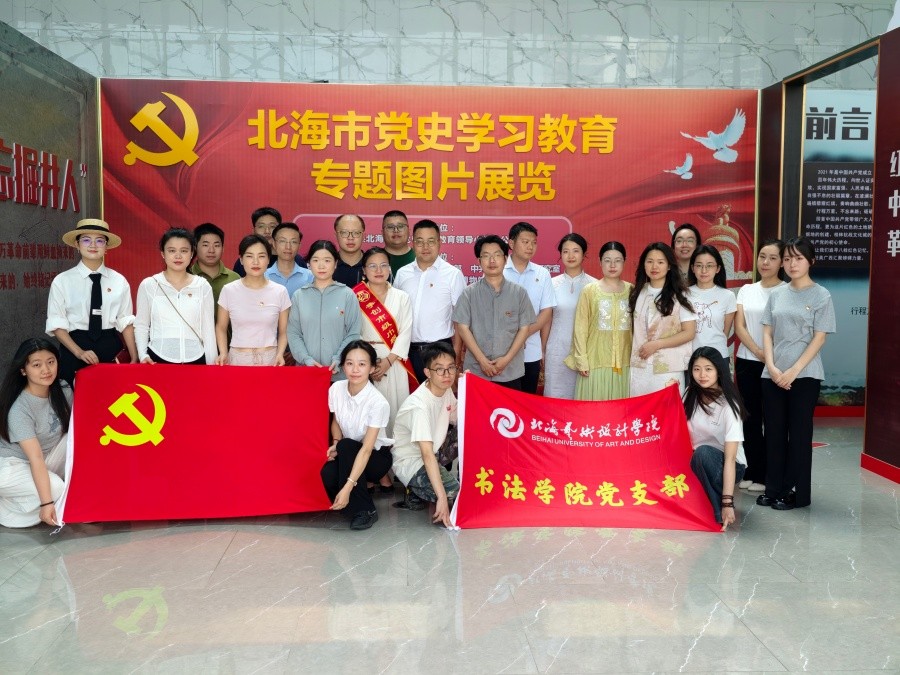 3月27日,我校书法学院组织全体师生党员赴北海市博物馆开展主题党日活动。活动以党史学习教育为核心,通过参观专题图片展览、重温入党誓词、参与党史知识竞答等环节,引导师生党员回望百年峥嵘岁月,叩问入党初心,接受深刻的精神淬炼。