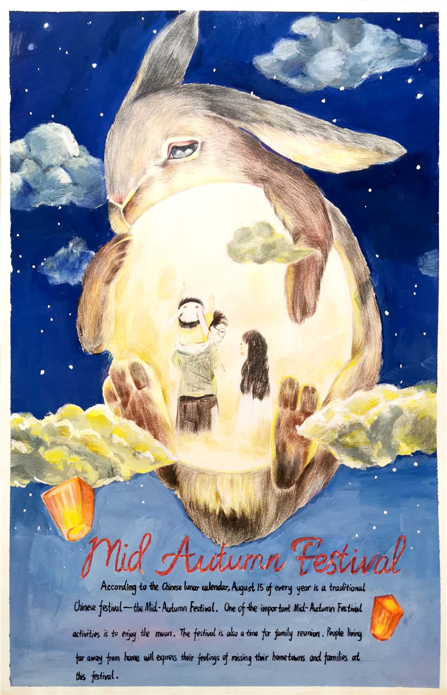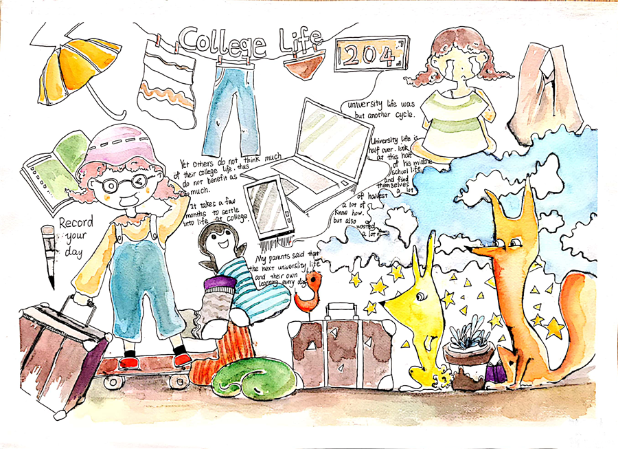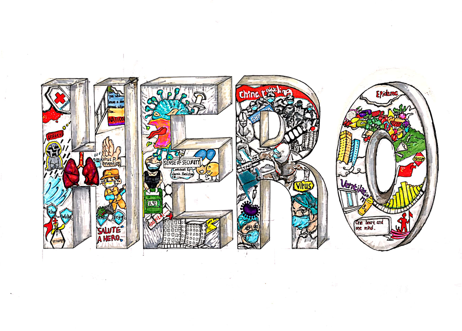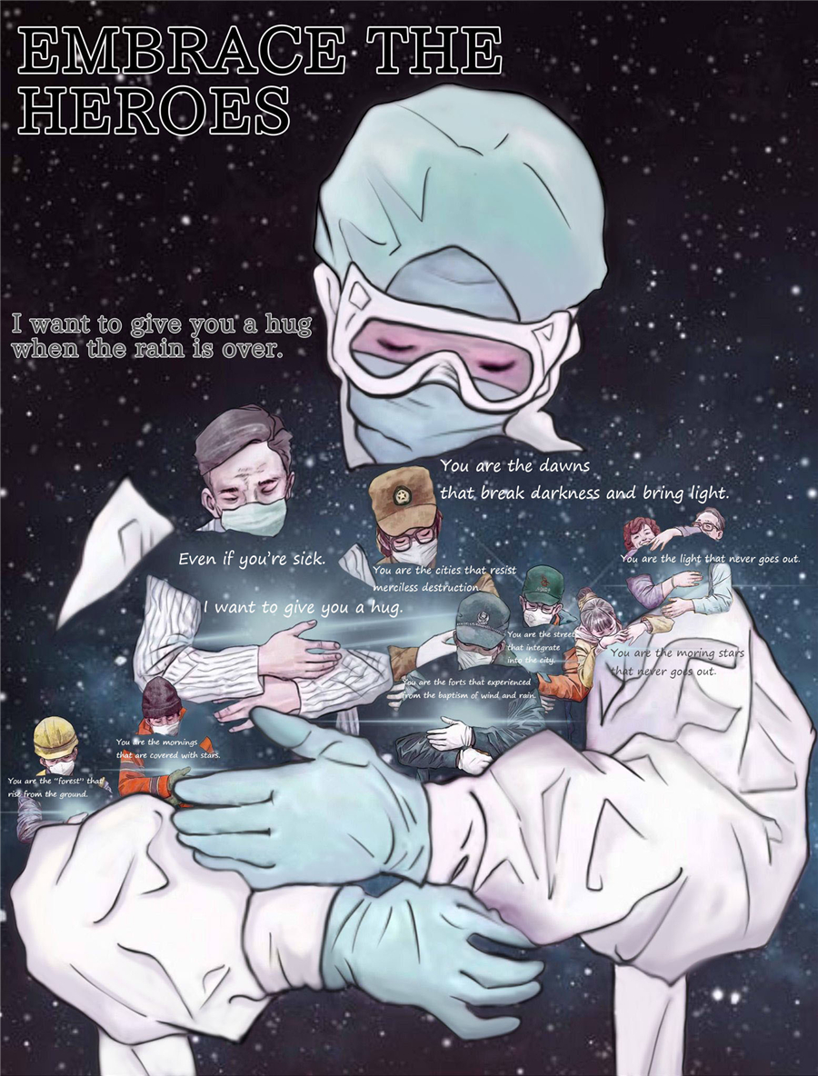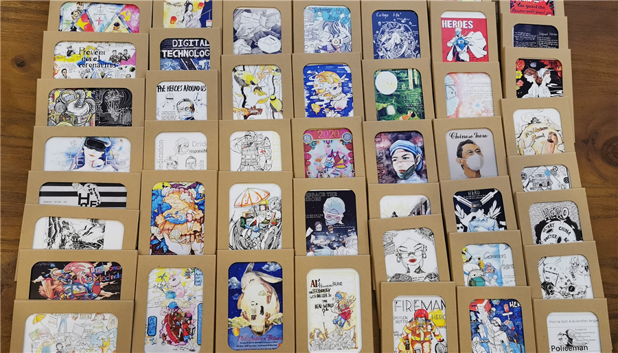 学生的作品以 “身边的英雄”、“中秋节”和“反战”等主题创设出各种绘画作品、英文诗歌和拍摄的MV,传递了赞扬抗疫英雄、协同奋进共渡难关、弘扬中国传统美德和维护世界和平的精神内涵。