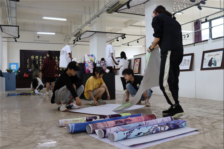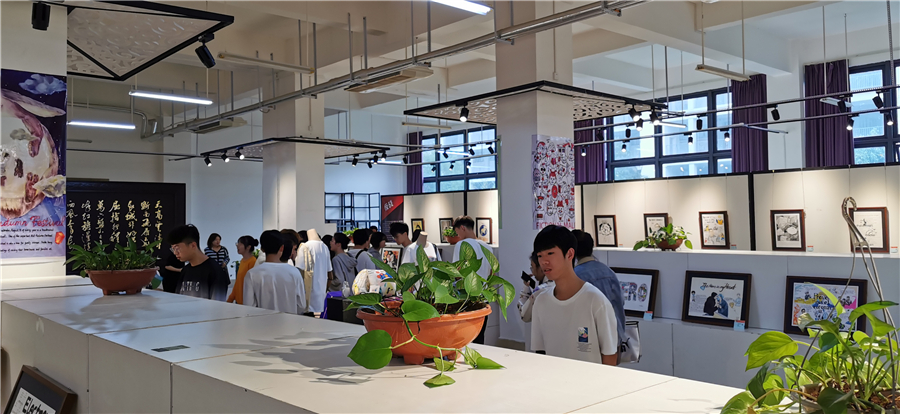 学生完成布展实践活动后,师生在展厅进行现场教学,课堂生动且具有代入感,学生可以积极主动参与到教学环节当中去,欣赏不同专业的学生对同一主题的不同设计和作品呈现。