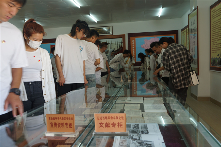 为庆祝中国共产党成立100周年,贯彻落实党史学习教育,传承红色革命基因,5月6日,我校团委组织青年教师和学生团员代表参观西场镇革命老区武装斗争史纪念馆,开展“纪念五四 学党史 跟党走”五四主题团日活动。