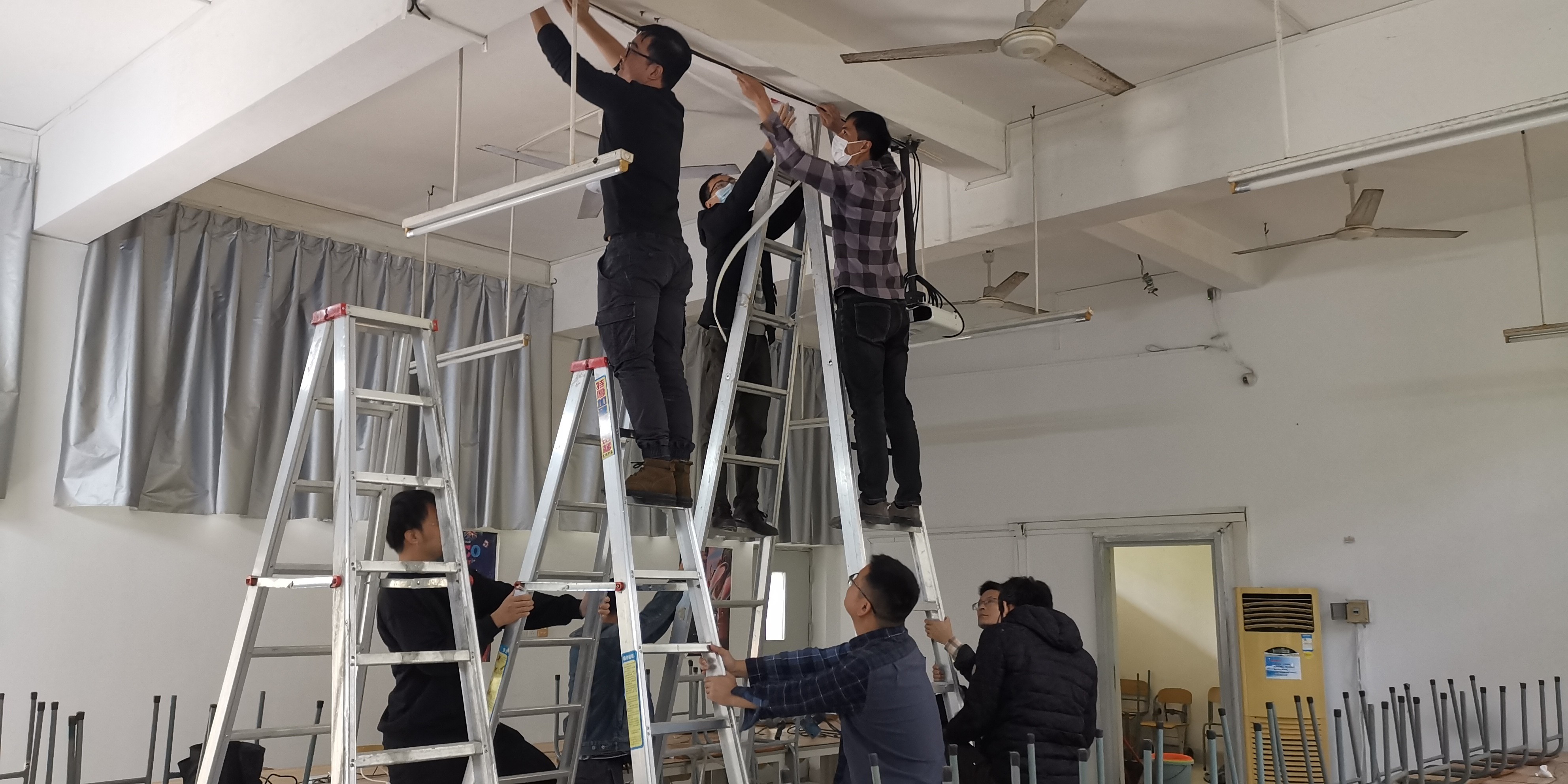 2022年12月,设备与信息处的老师们在本学期放假前对设施、设备进行一次全面检测、验收,并在假期分时段安排人员做好设备养护、维修工作,保障下学期开学正常使用。(劳大耀/摄)