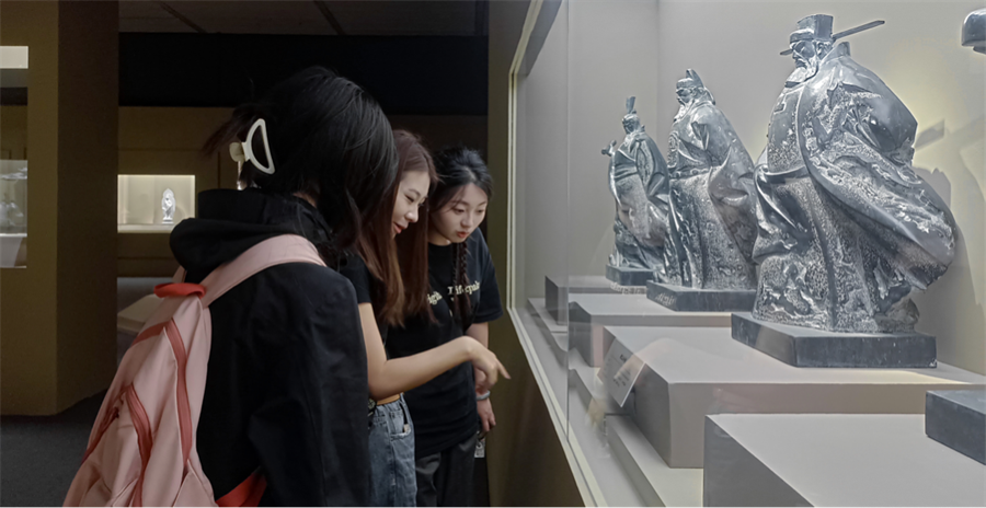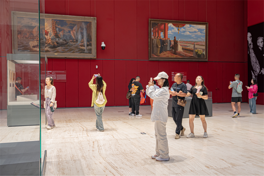 此次专业考察的第一站是“北京中轴线”的重要组成部分——天安门广场及建筑群(中国国家博物馆),在《屹立东方——馆藏经典美术作品展》展厅,美术学院师生被一件件珍贵的历史文物深深吸引,了解其背后历史故事,深刻感受中华民族从屈辱中站起、从苦难中奋起的伟大历程,增强了文化自信和民族自豪感。