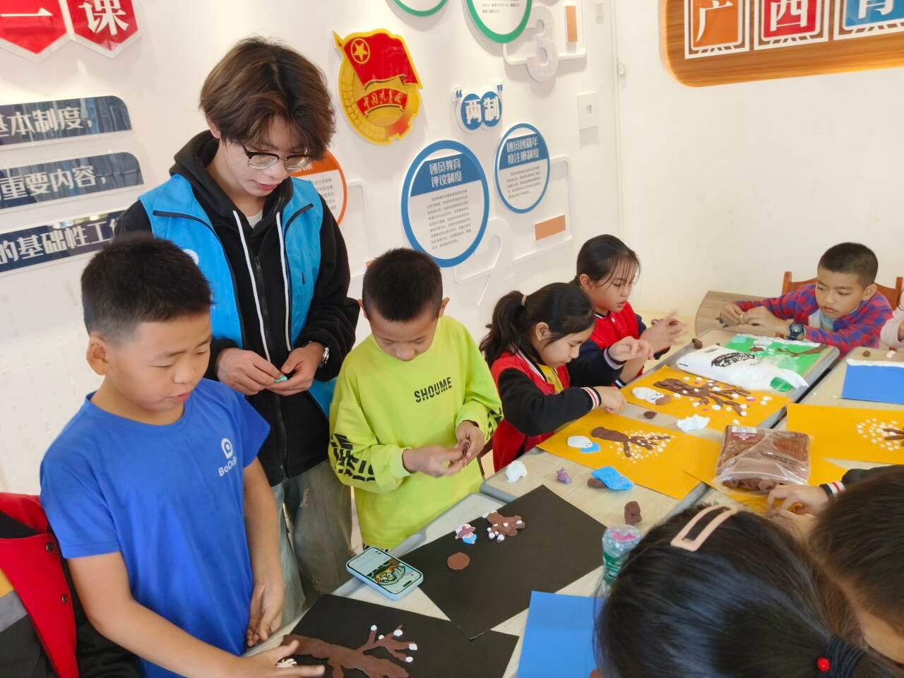 在赤东村,志愿者们开展了“巧手迎小雪,童心暖寒冬”创意手工活动。带着孩子们一起探索无限的创造力,让他们的想象力在这次课程中得到发展,展现出独特的艺术天赋。孩子们用粘土创造出了一幅幅属于自己的、独一无二的作品。
