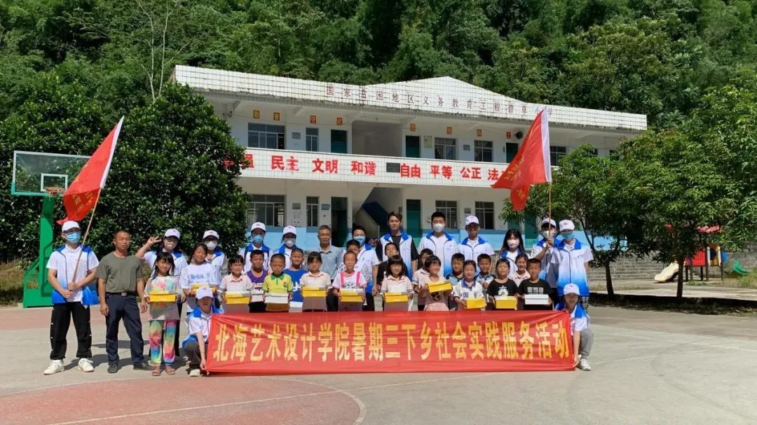 2022年7月12日,北海艺术设计学院师生响应共青团中央号召,来到河池市大化瑶族自治县开展暑期“三下乡”社会实践活动。为迎接党的二十大胜利召开,我校组建了支教关爱服务团,为大化瑶族自治县的乡镇小学送去知识、为当地相对贫困的家庭送去温暖。北海艺术设计学院支教关爱服务团作为本次暑期“三下乡”的主要团队之一,在担当中作为,在奉献中成长。